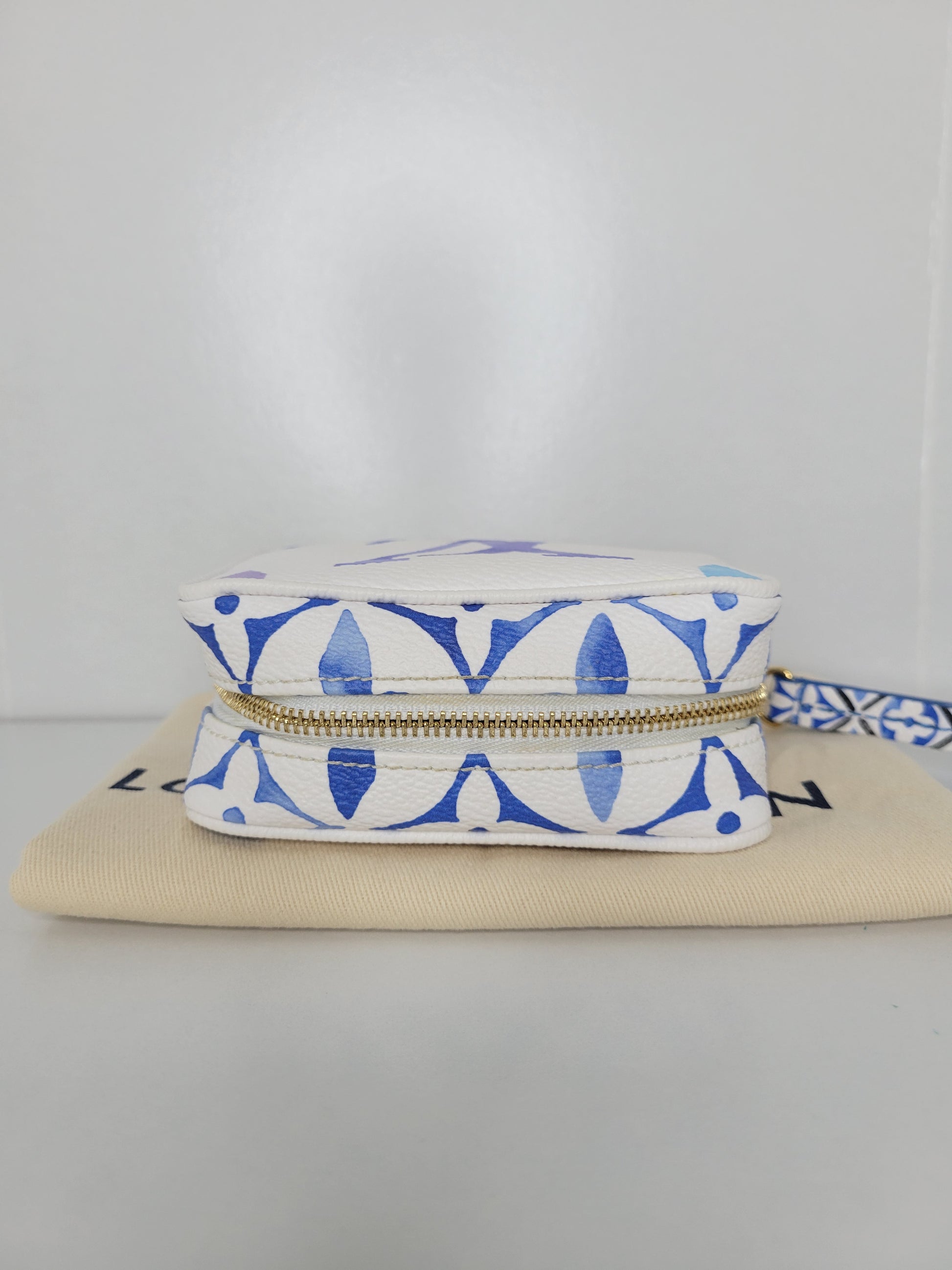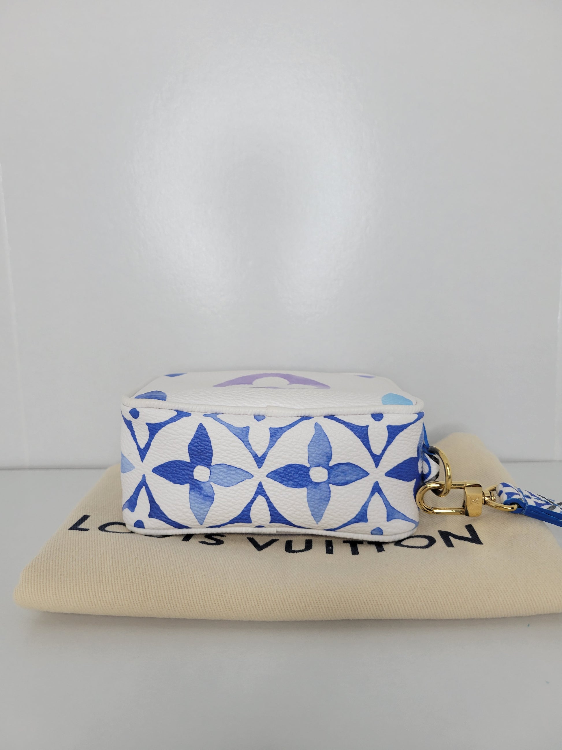The Louis Vuitton Monogram By The Pool Wapity is a limited edition wristlet / clutch that features a removable strap, an easy access zipper closure pouch with a small flat pocket inside. Use it as a wristlet, clutch, camera pouch or catch all!