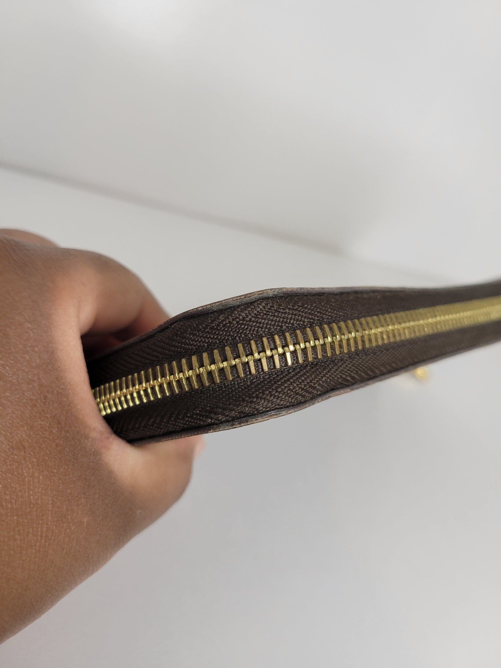 *Outside of wallet shows wear to screen print and minor signs of use to Damier pattern