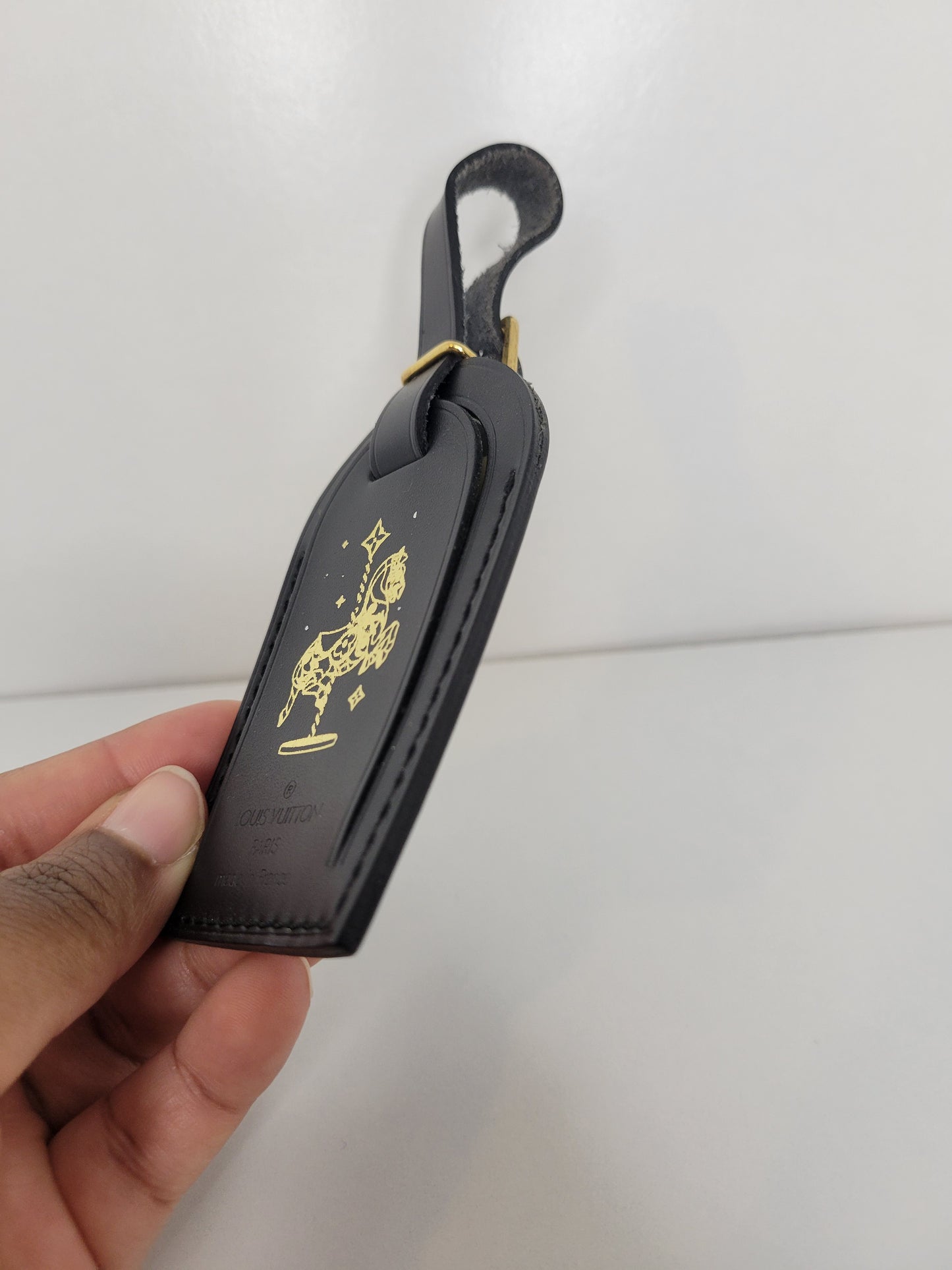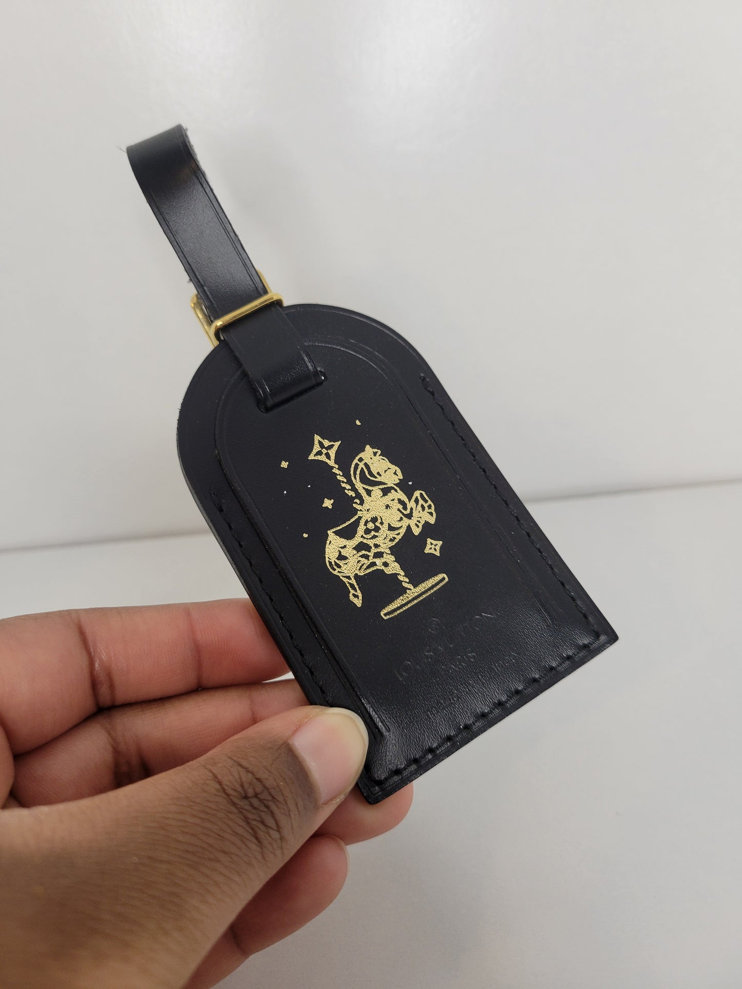 This adorable luggage tag can be attached to any of your favorite LV bags for a unique look. It's adorned with the discontinued carousel horse hot stamp!