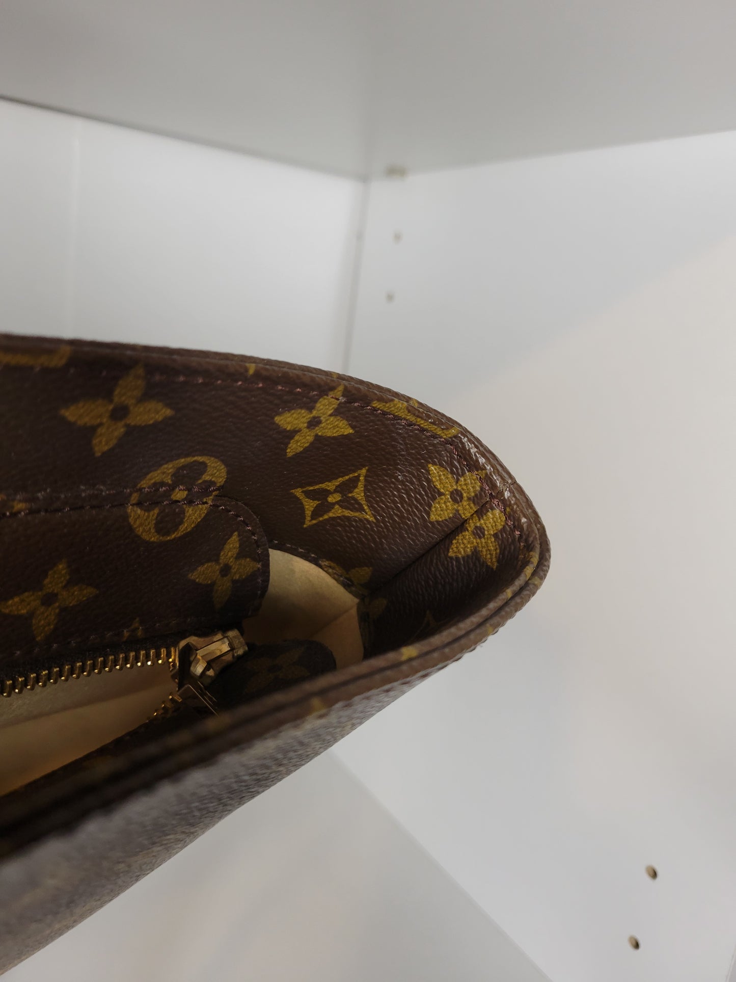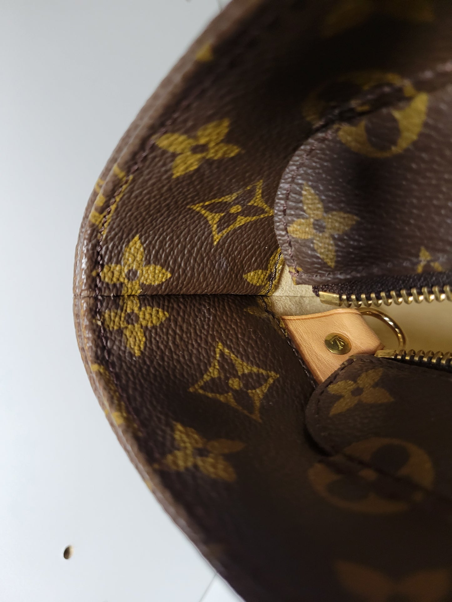 *White marks on canvas trimming near zipper