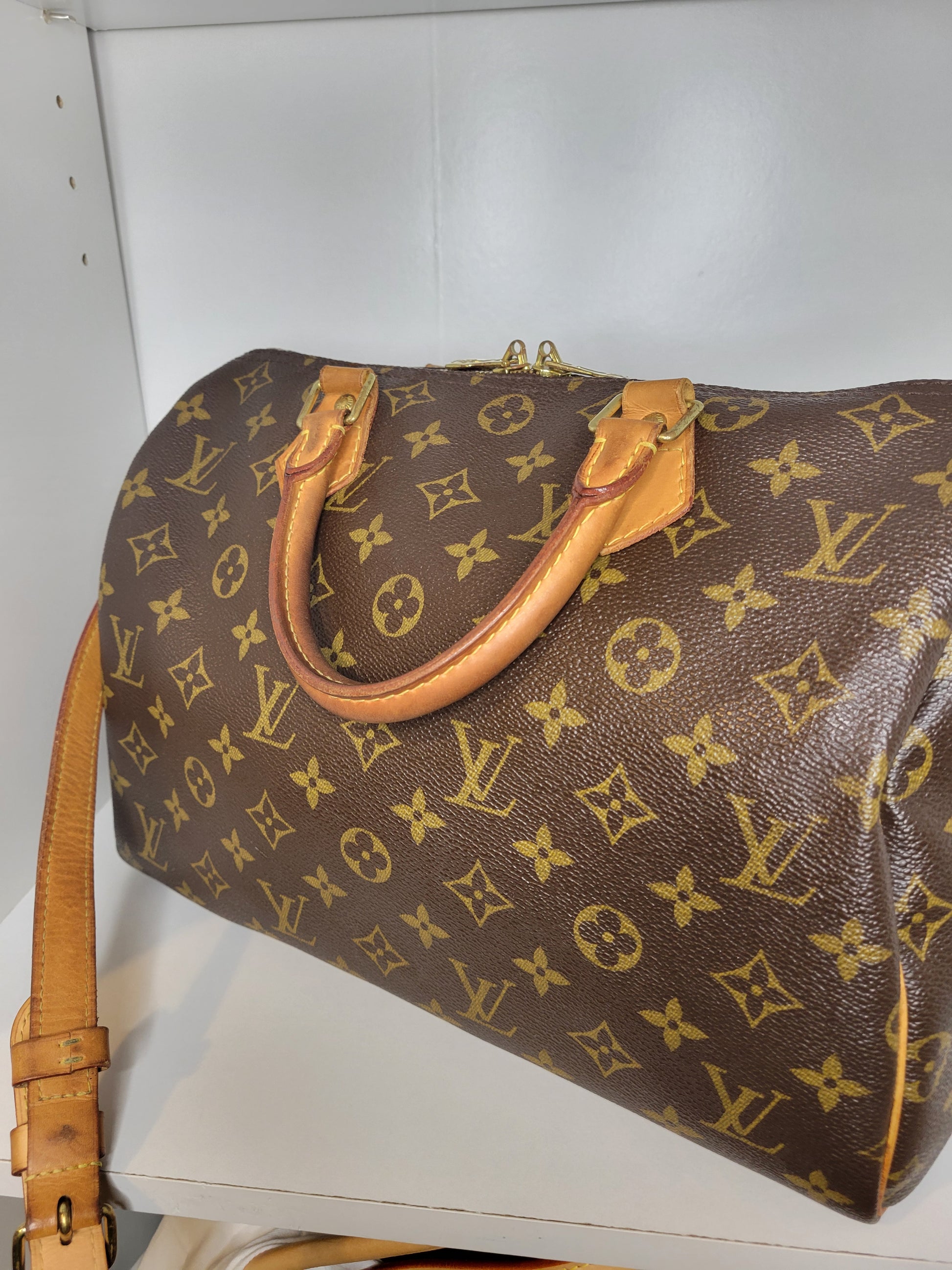 The classic and updated Speedy Bandouliere is a must have in any Louis Vuitton collection. It's lightweight, spacious and flexible! It can be carried as a handbag, shoulder bag and crossbody. It has a large main opening with one small pocket.