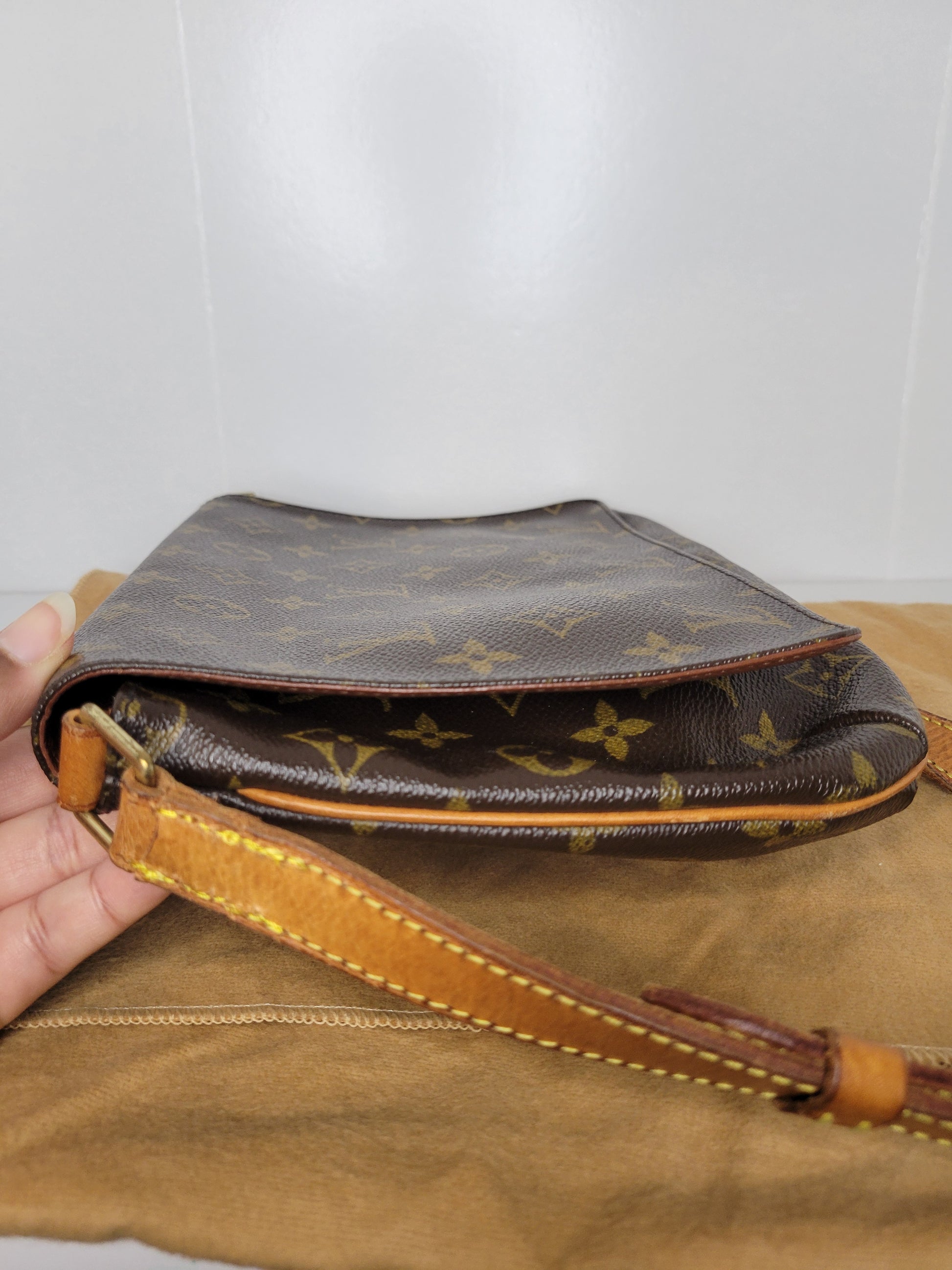 The Louis Vuitton Monogram Canvas Musette Tango bag is an elegant and sleek looking bag. It comes with a versatile adjustable leather shoulder strap and a flap top closure that tucks comfortably under the arm. Perfect if you're looking for something feminine and lightweight to hold all your girly essentials.