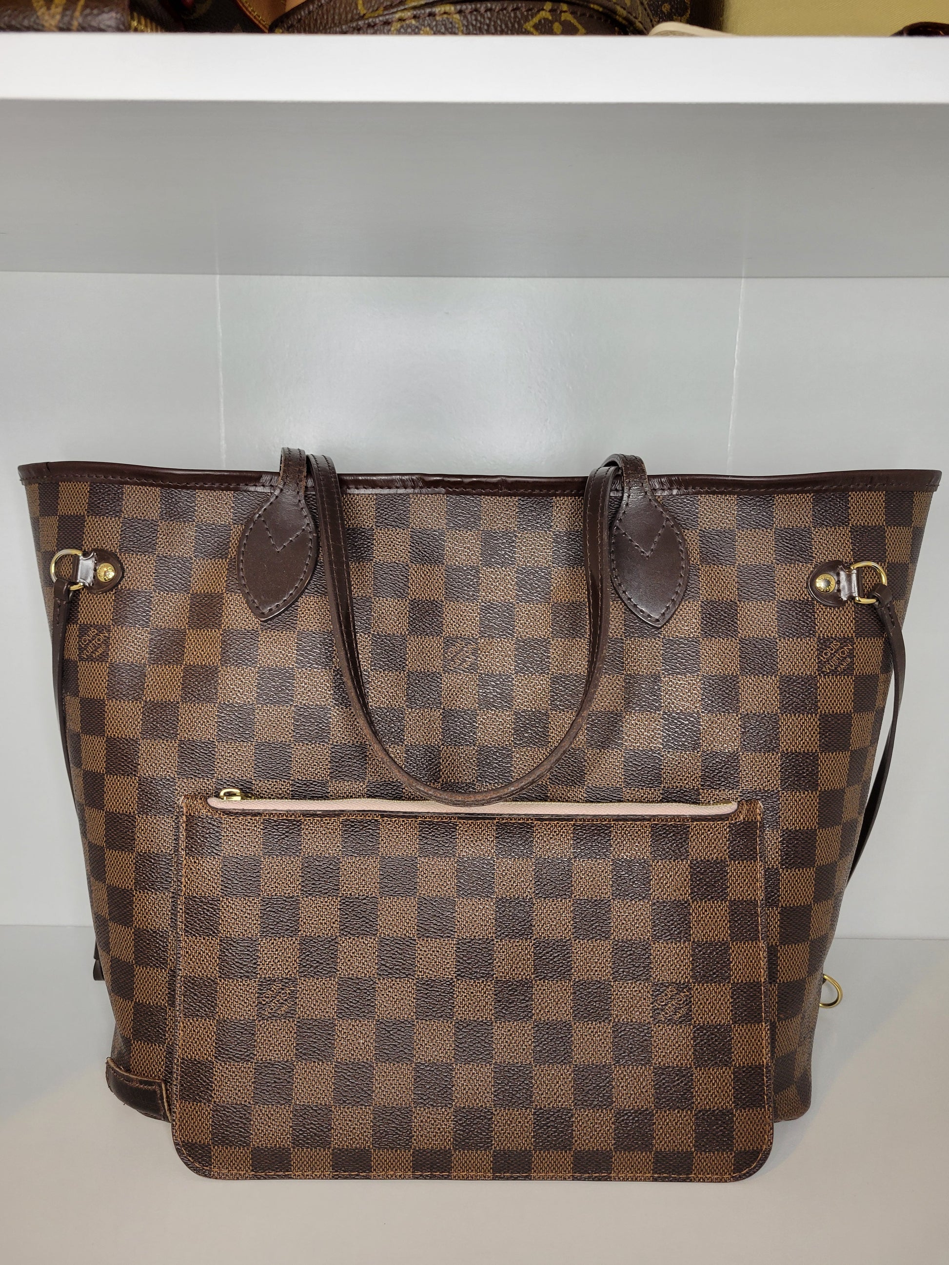 Louis Vuitton Pink Damier Ebene Neverfull MM & Pochette SD3116 / SD3106