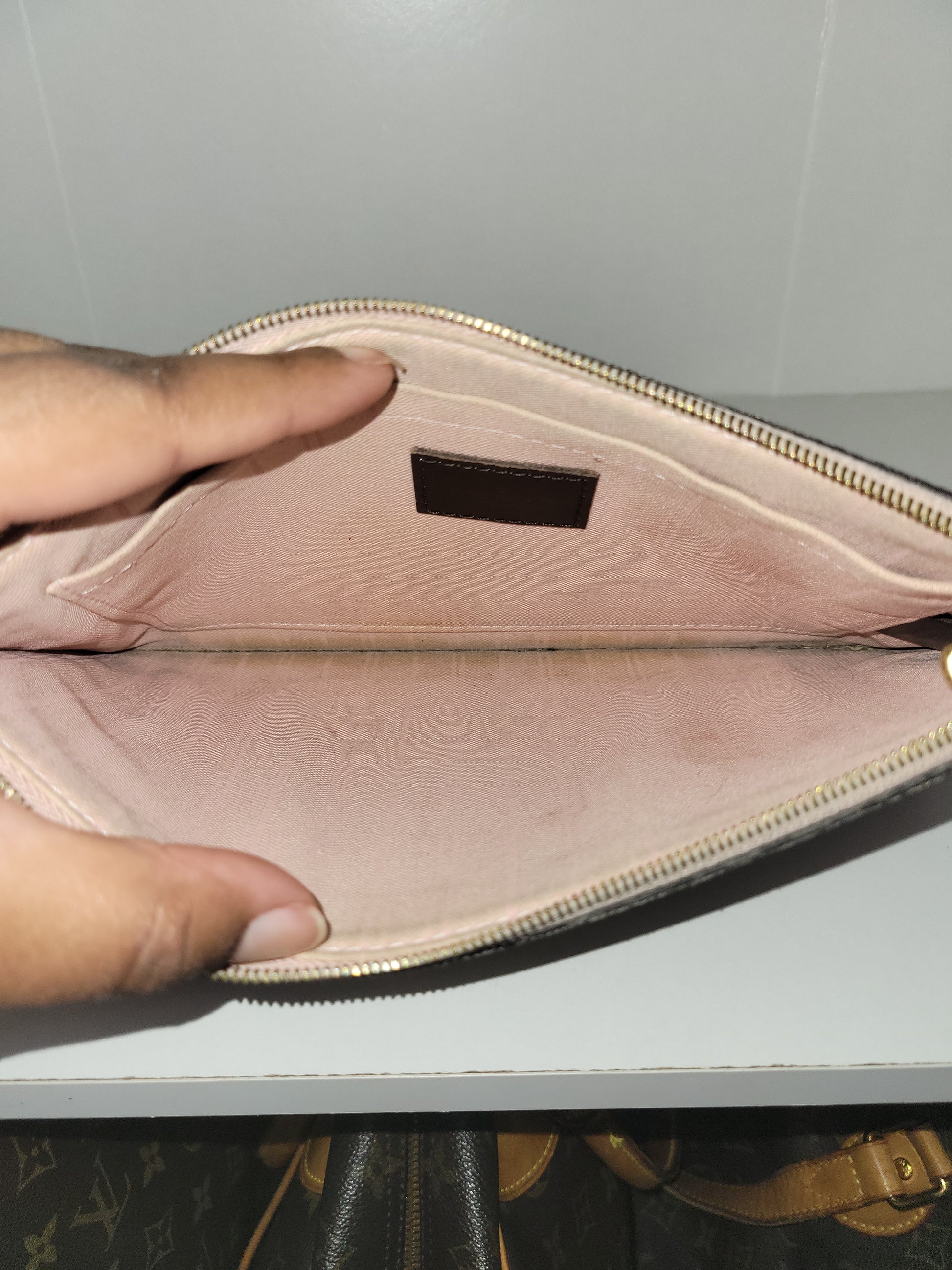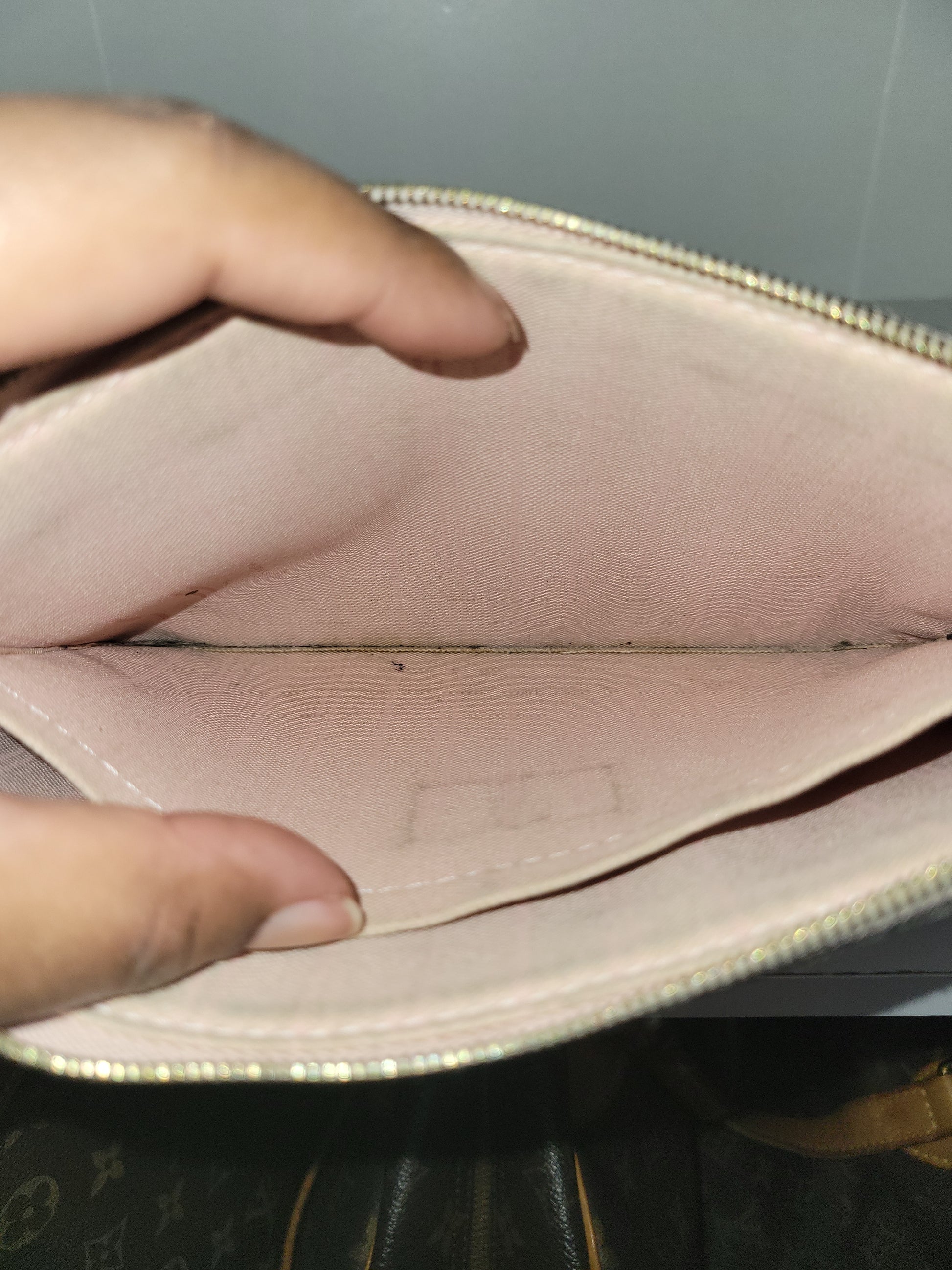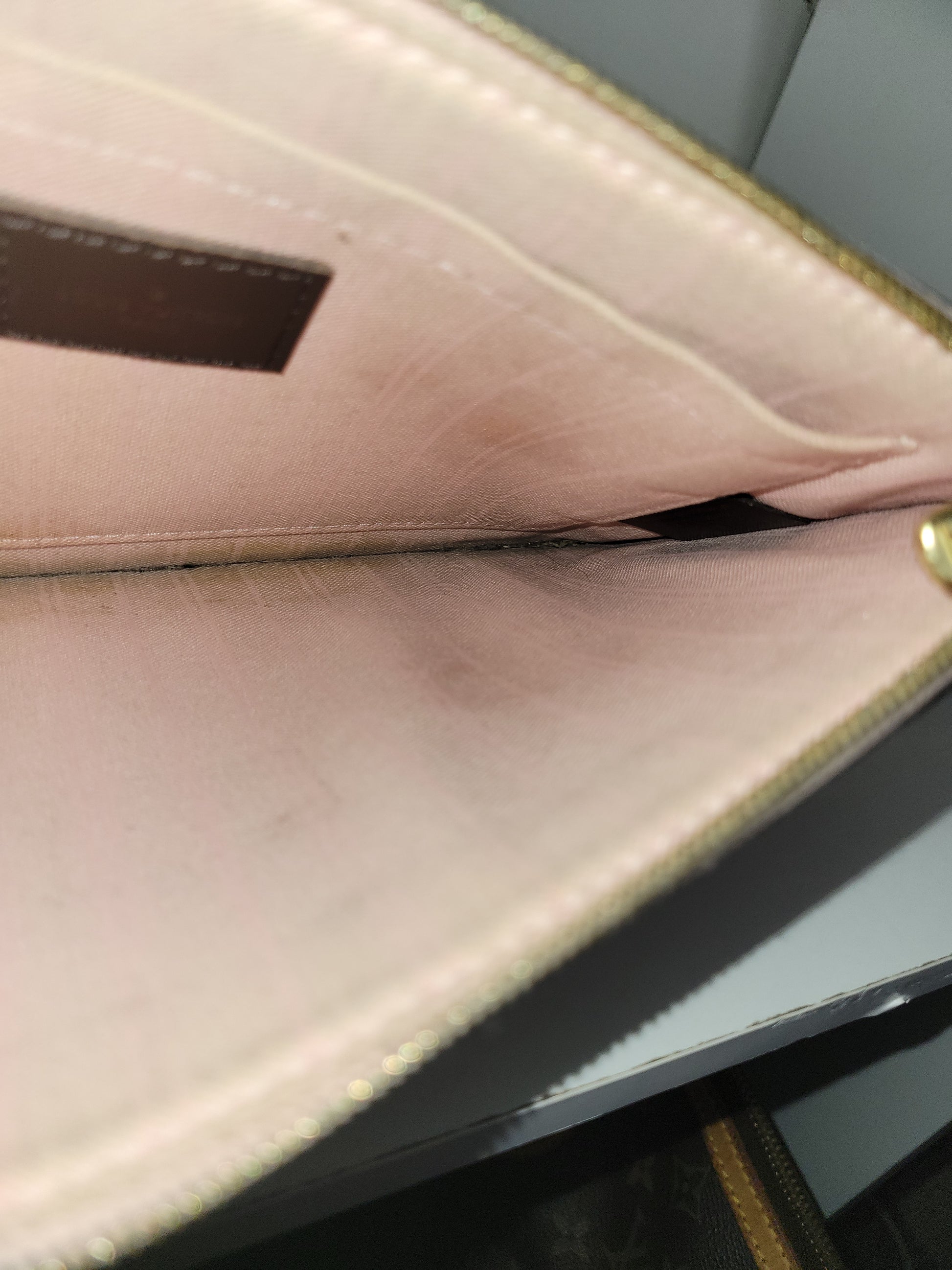 *The Pochette interior shows staining and heavy wear. The outside shows signs of wear and has glazing wear and tear