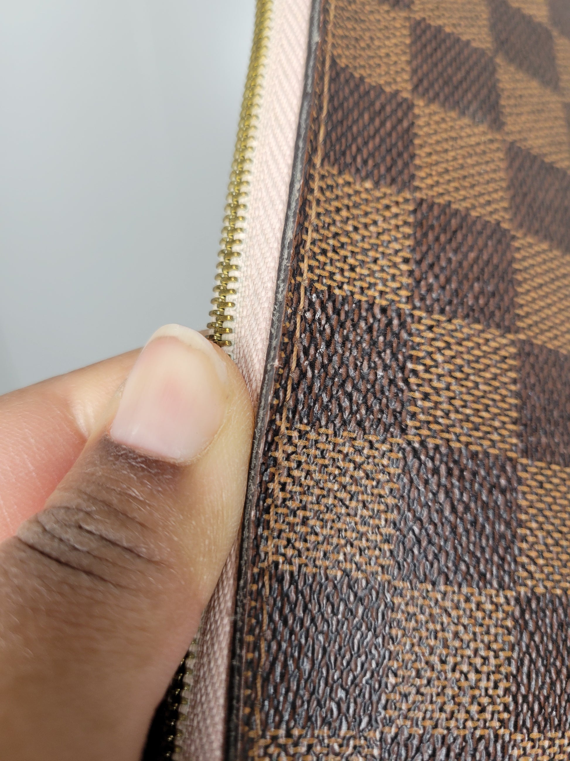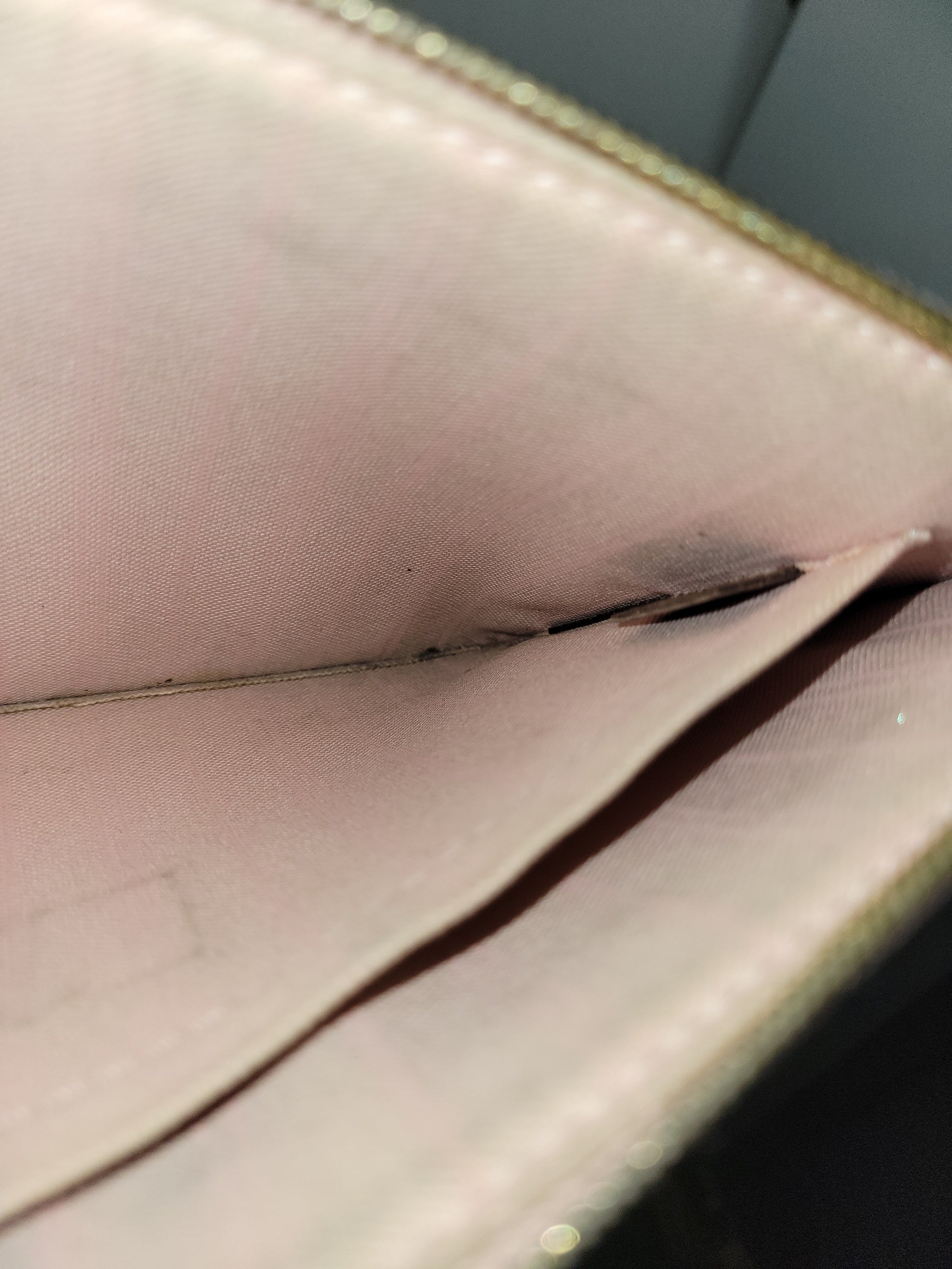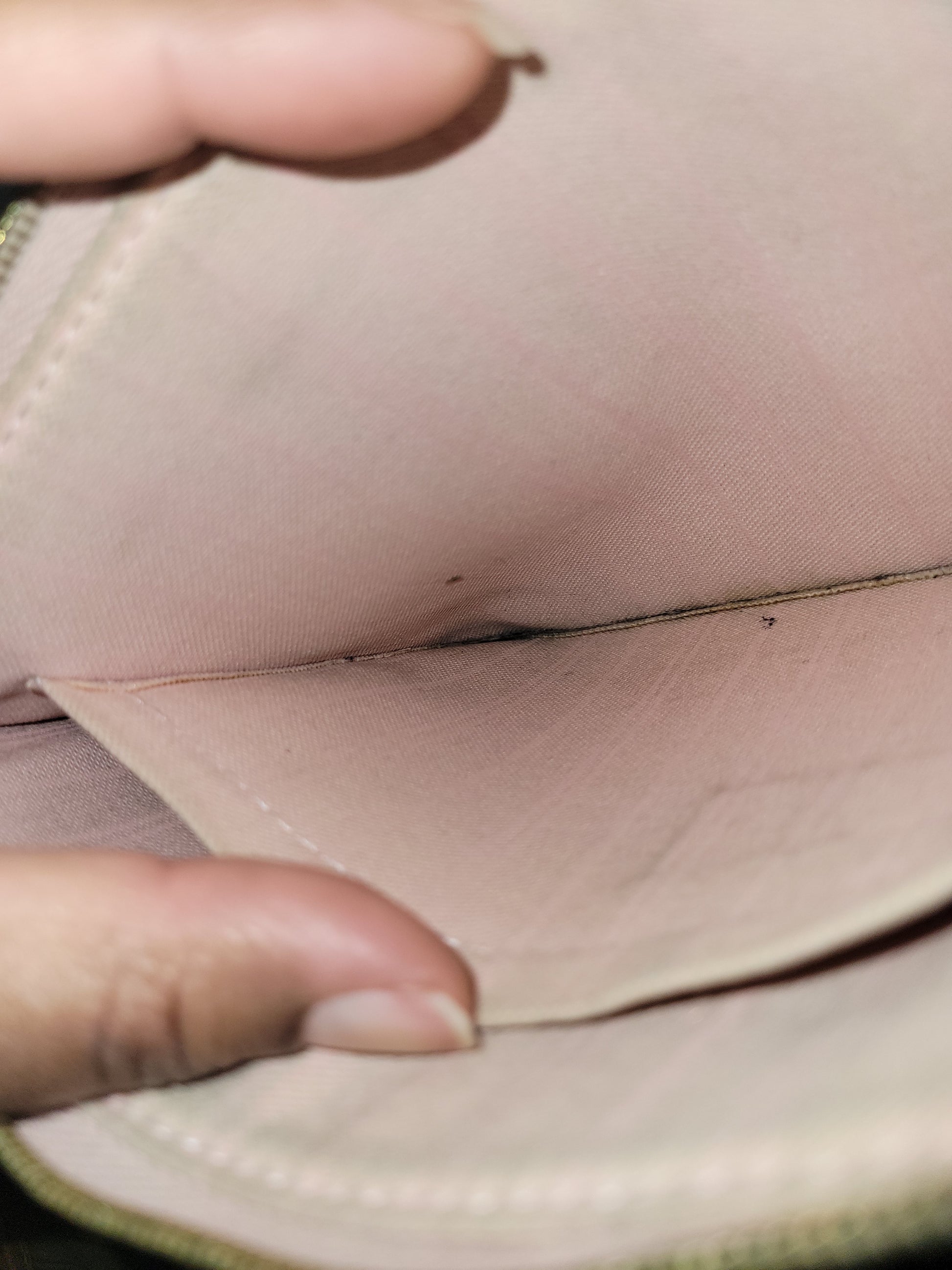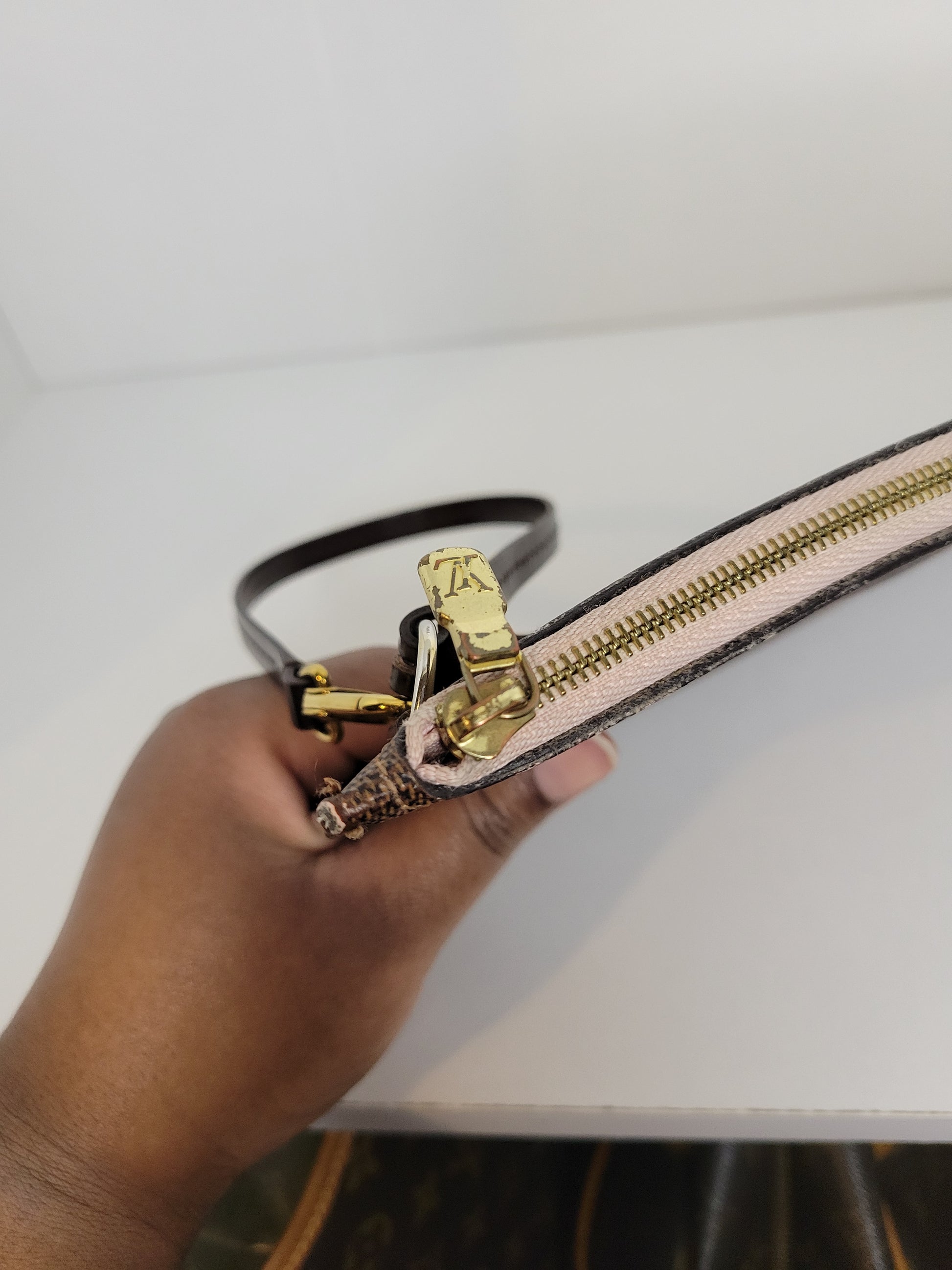 *The Pochette interior shows staining and heavy wear. The outside shows signs of wear and has glazing wear and tear
