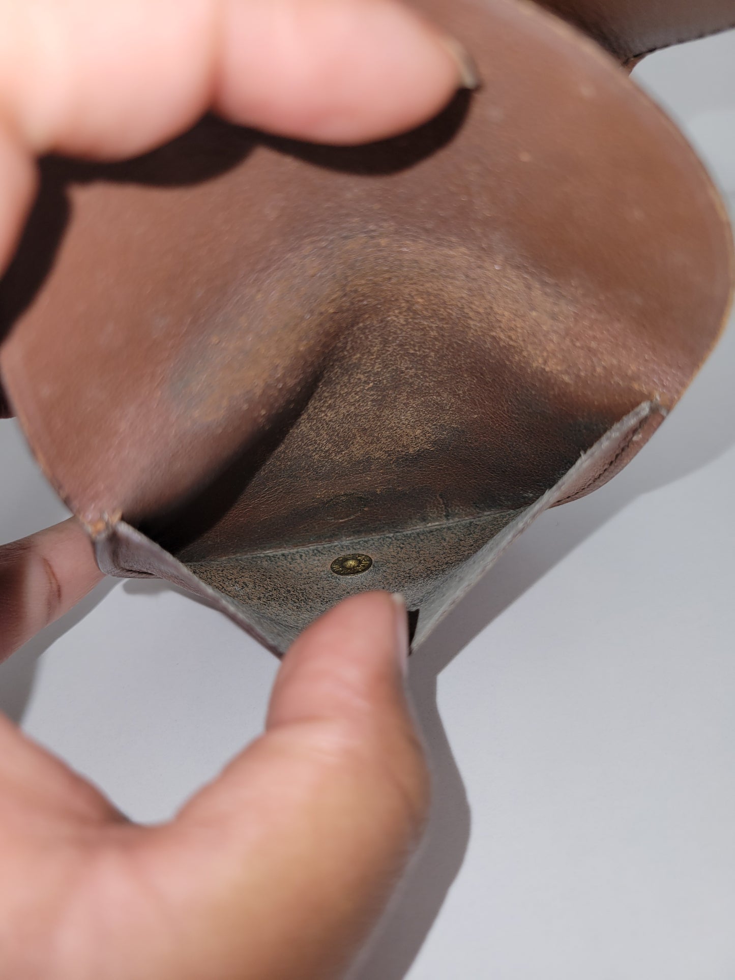 *Interior is in fair condition with signs of aging, darkening of leather, scratches, and dirt from coins