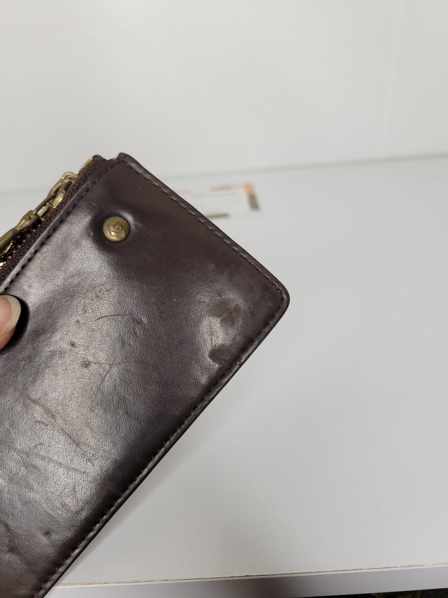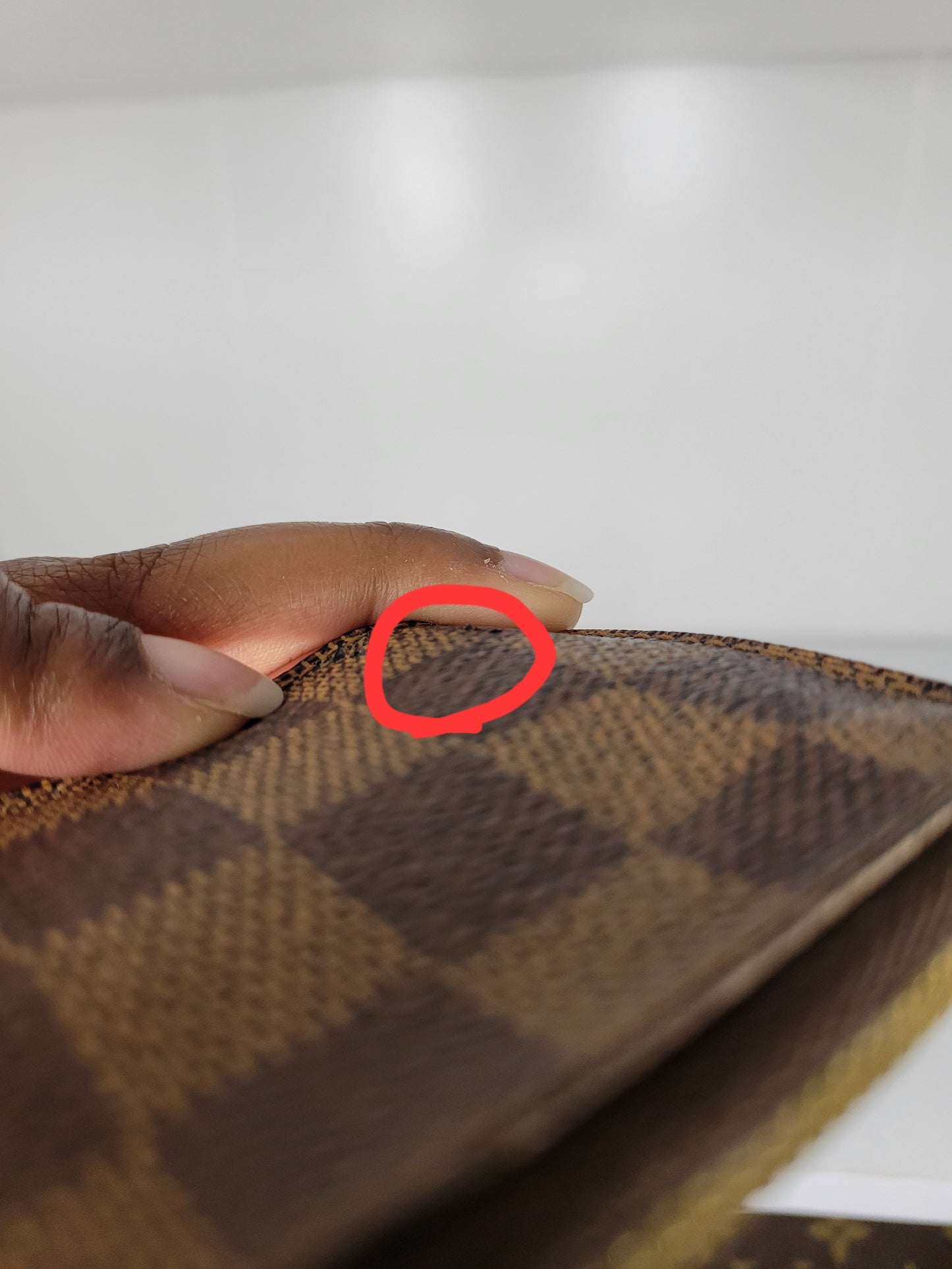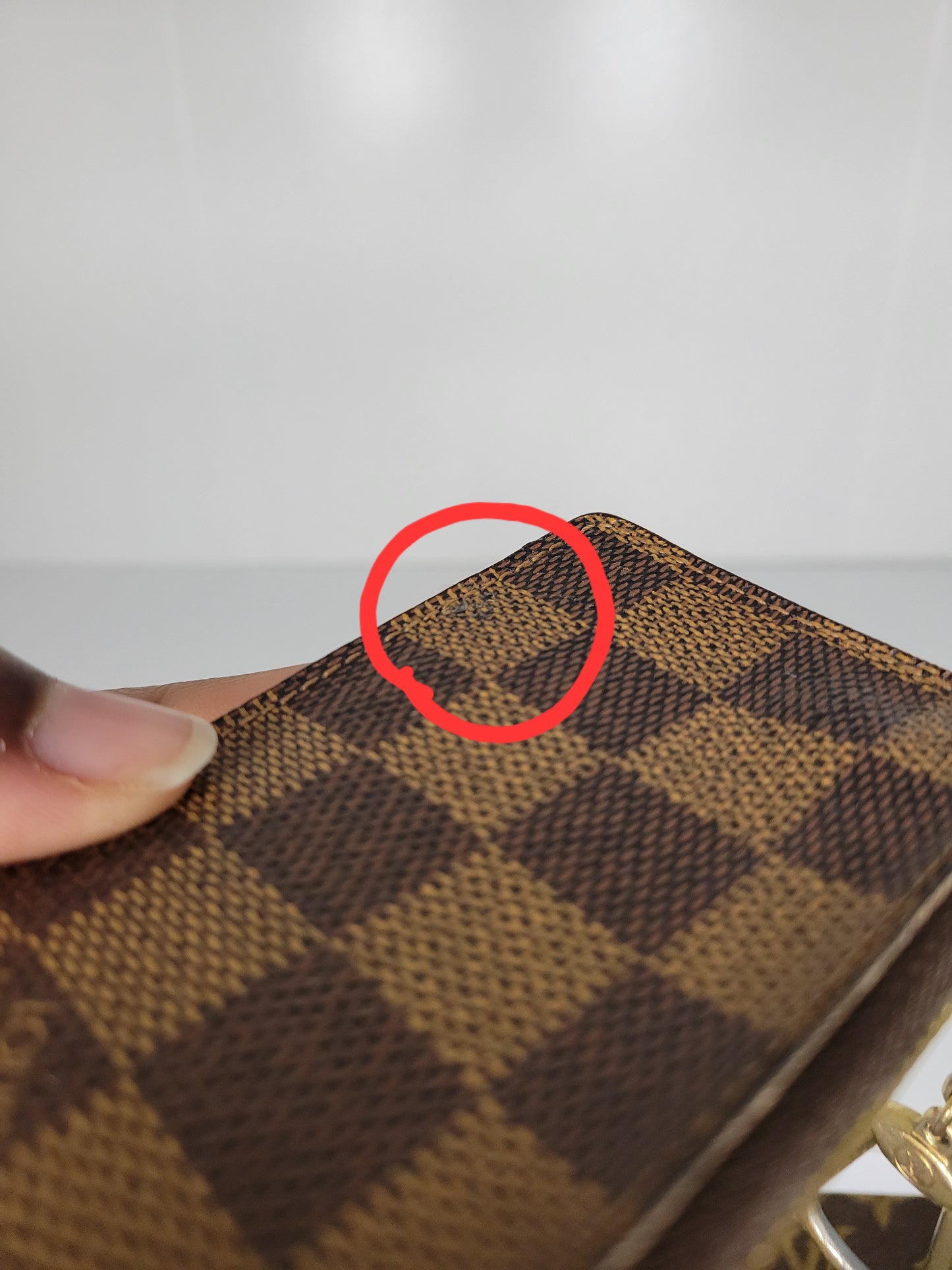 *Outside shows signs of wear to damier pattern including scuffing and scratches to pattern, back leather panel has scratches and scuffs as well