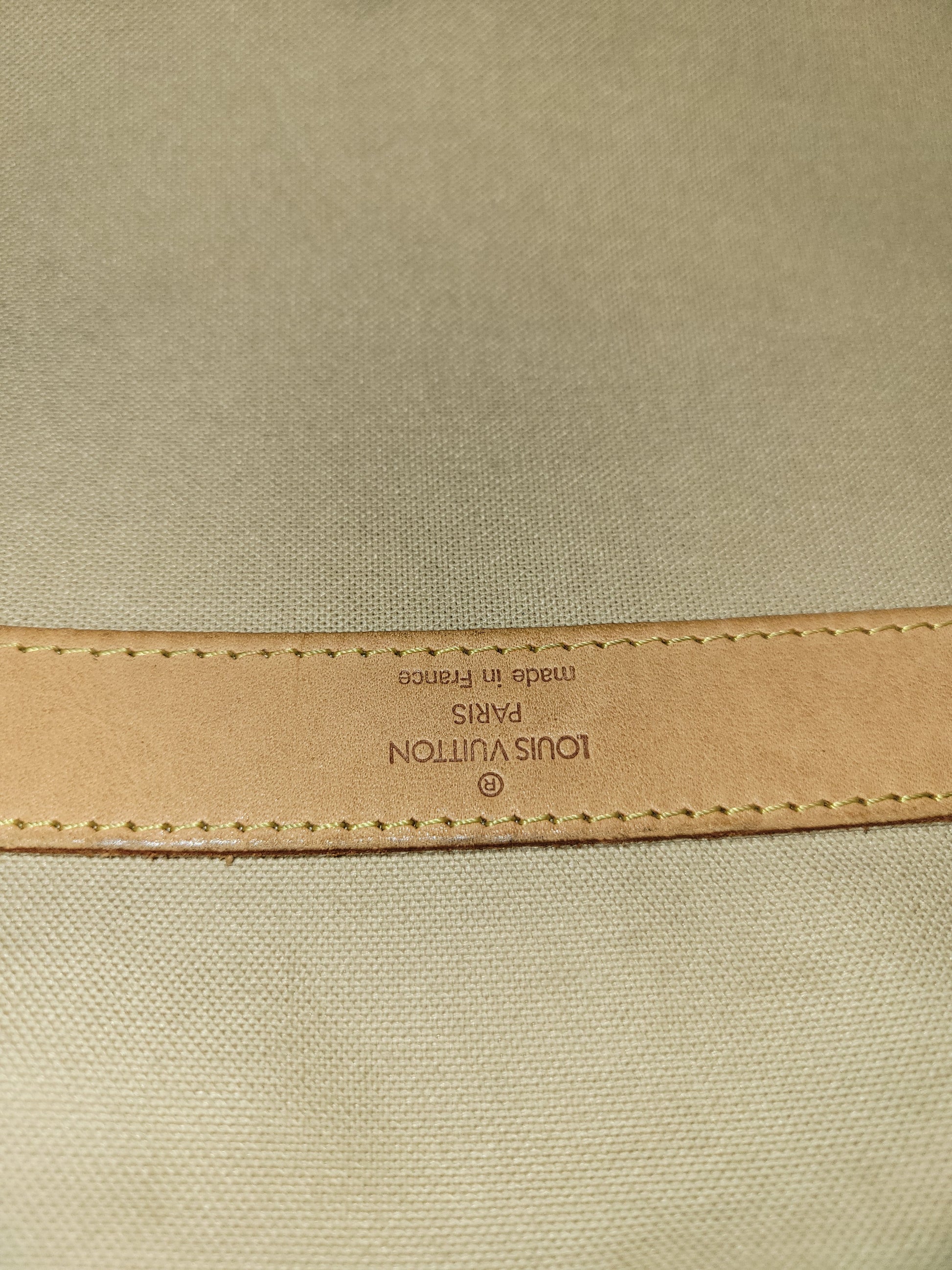 *Vachetta leather on outside has some cracking and signs of aging, interior strip of leather has watermarks