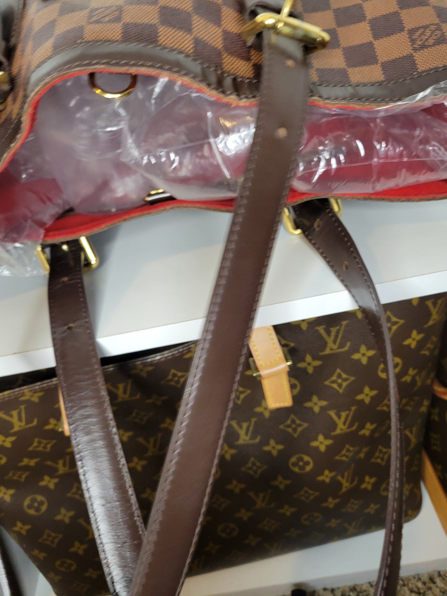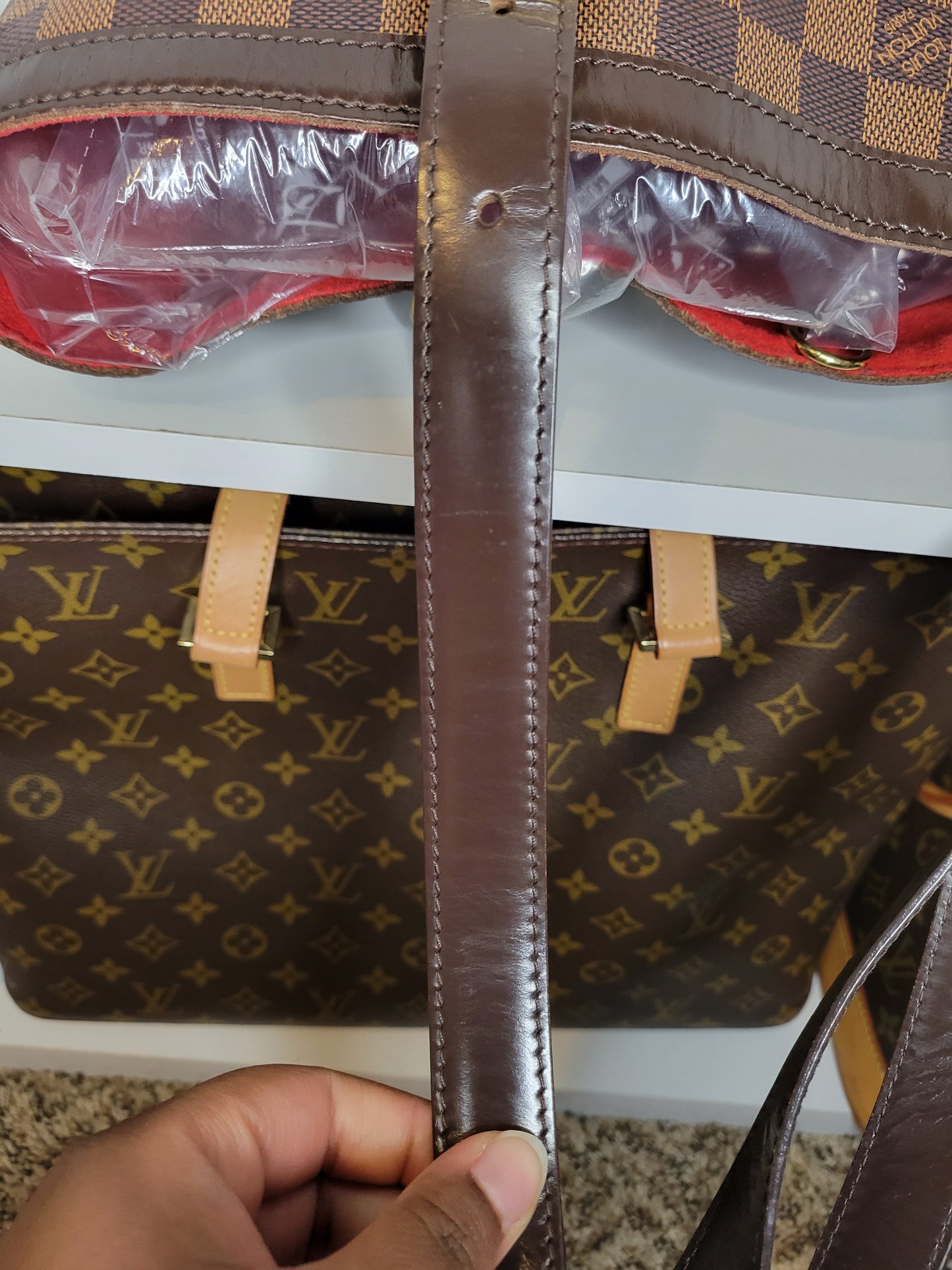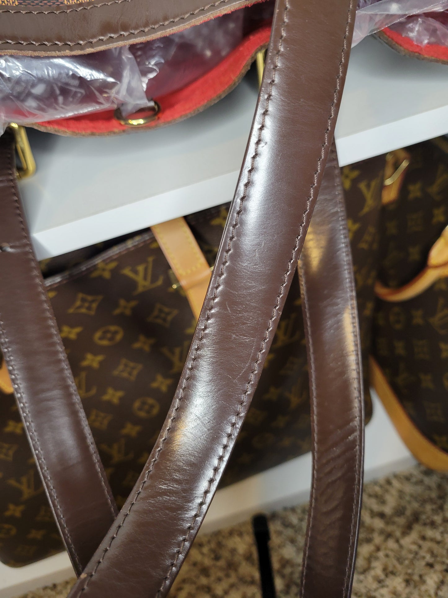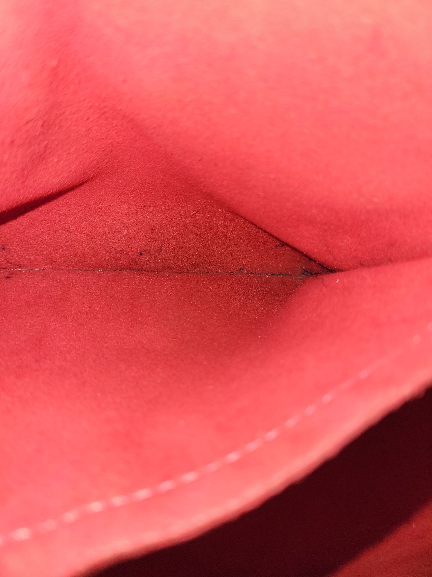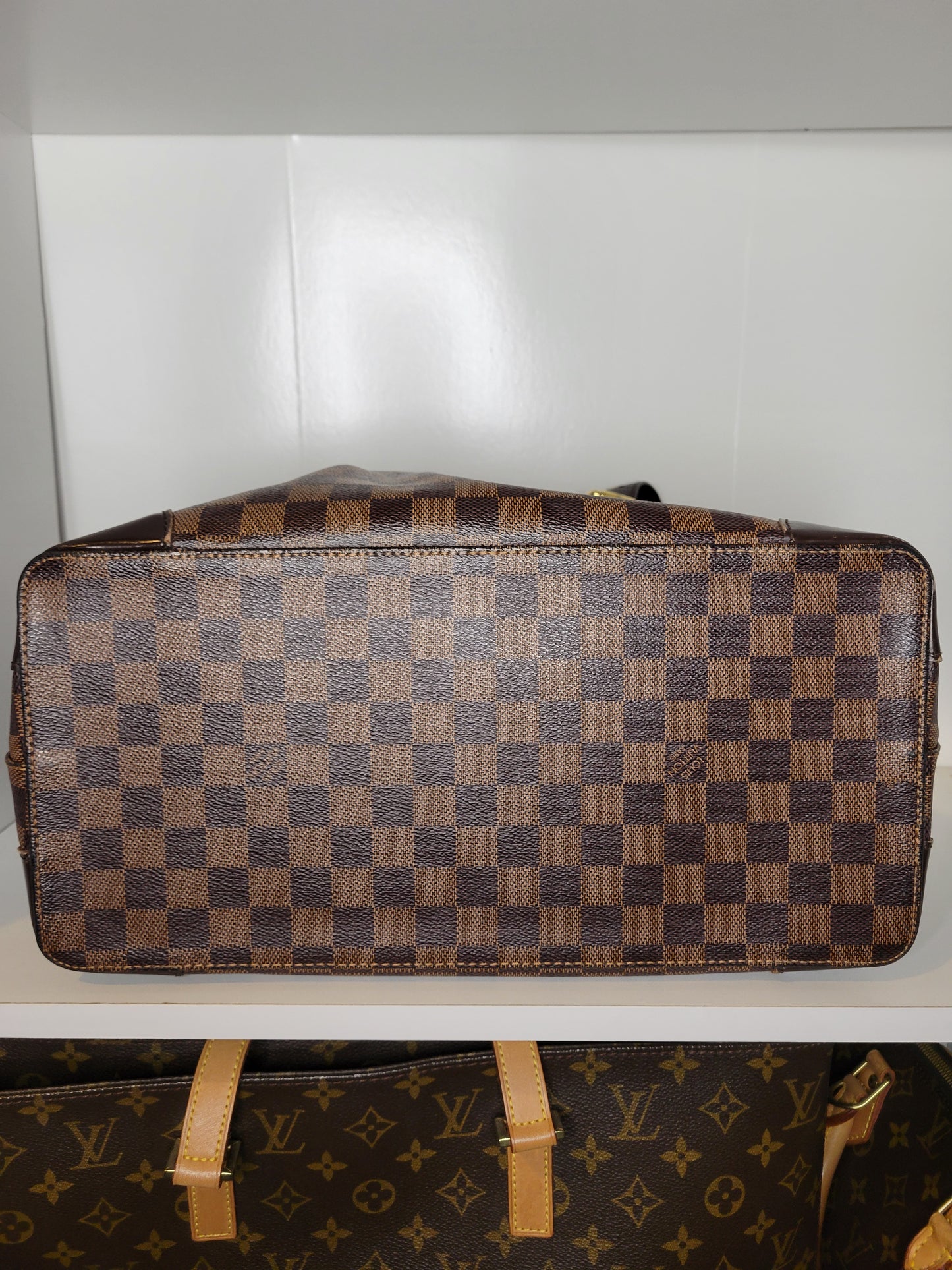 This Louis Vuitton Damier Canvas Hampstead MM Bag is the medium size of the Hampstead family and has fashion and functionality all rolled into one. With its expandable sides and roomy capacity, it is perfect for taking to the office or going shopping. It also features a golden "Louis Vuitton Inventeur" plaque on the front of the bag.