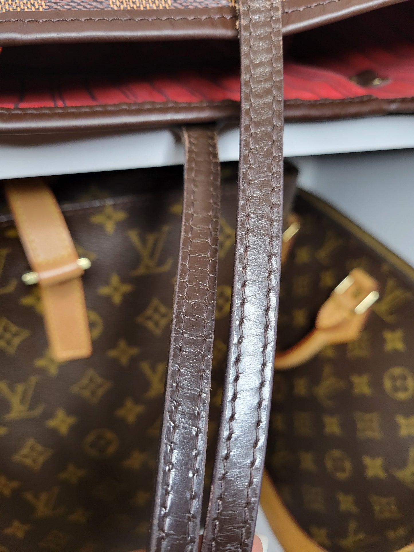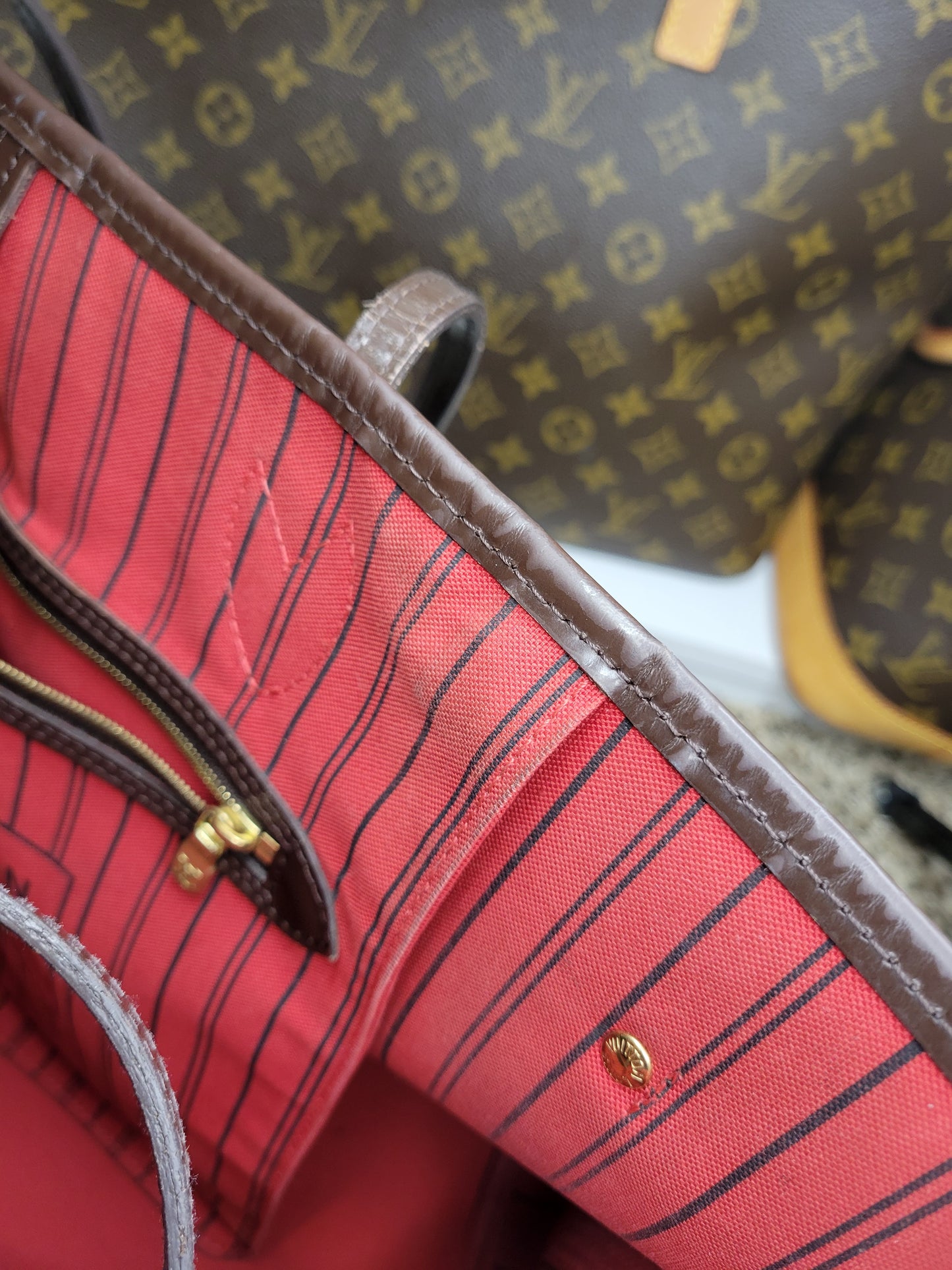 The Neverfull GM is for anyone who carries their whole life with them and more! It can also serve purpose as a travel bag due to its flexibility, shape and size. It has a zipper pocket, clip closure, and large pocket with zip closure.