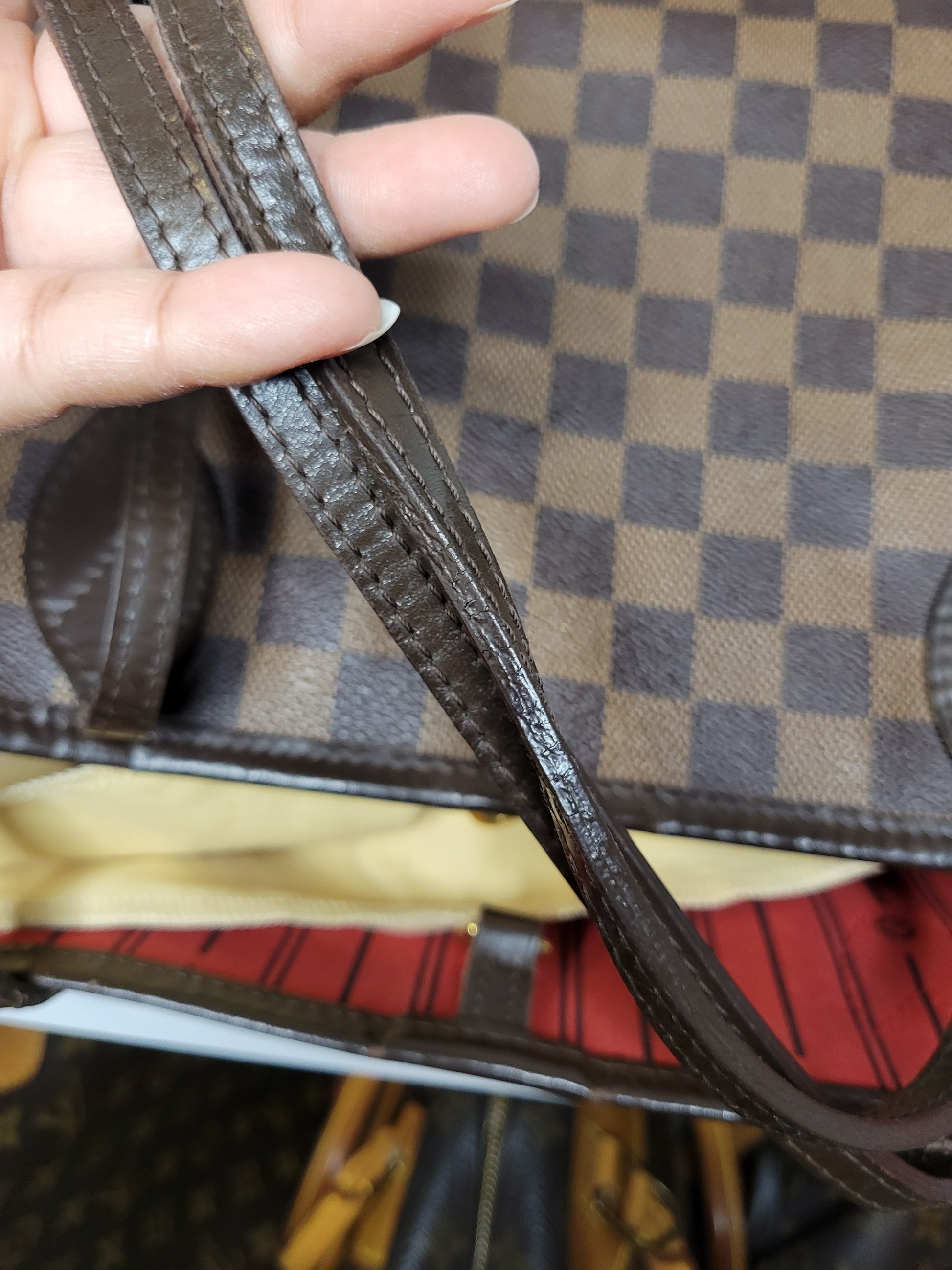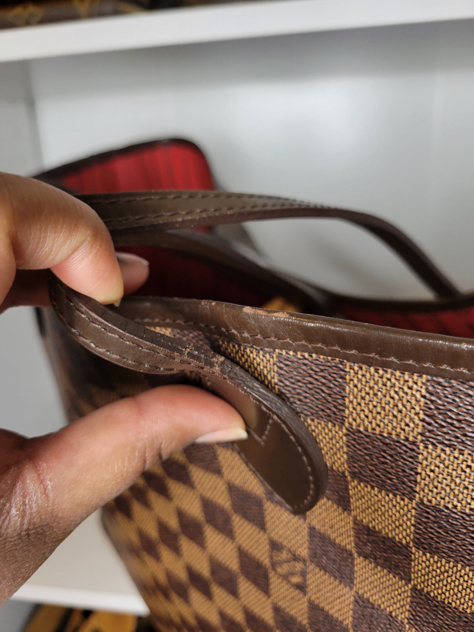 *Outside of bag has minor wear to Damier Ebene canvas and has scuffs / scratches and creases