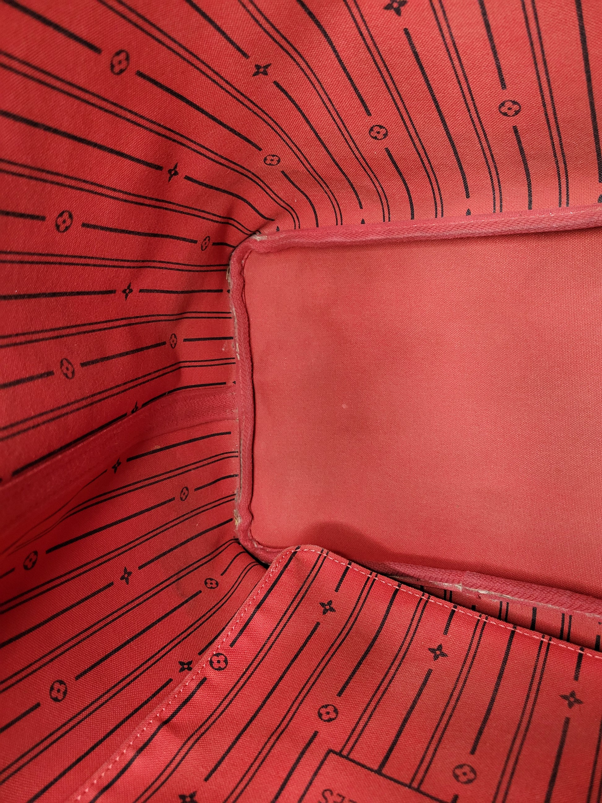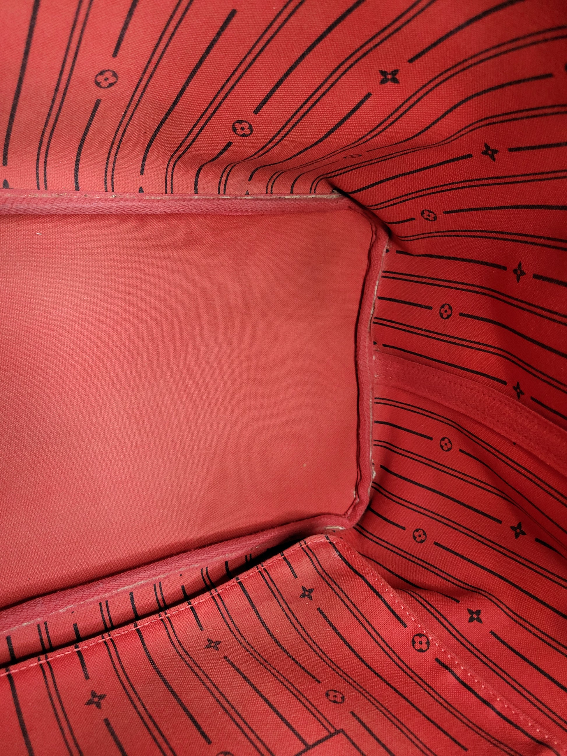 The Neverfull GM is for anyone who carries their whole life with them and more! It can also serve purpose as a travel bag due to its flexibility, shape and size. It has a zipper pocket, clip closure, and large pocket with zip closure.