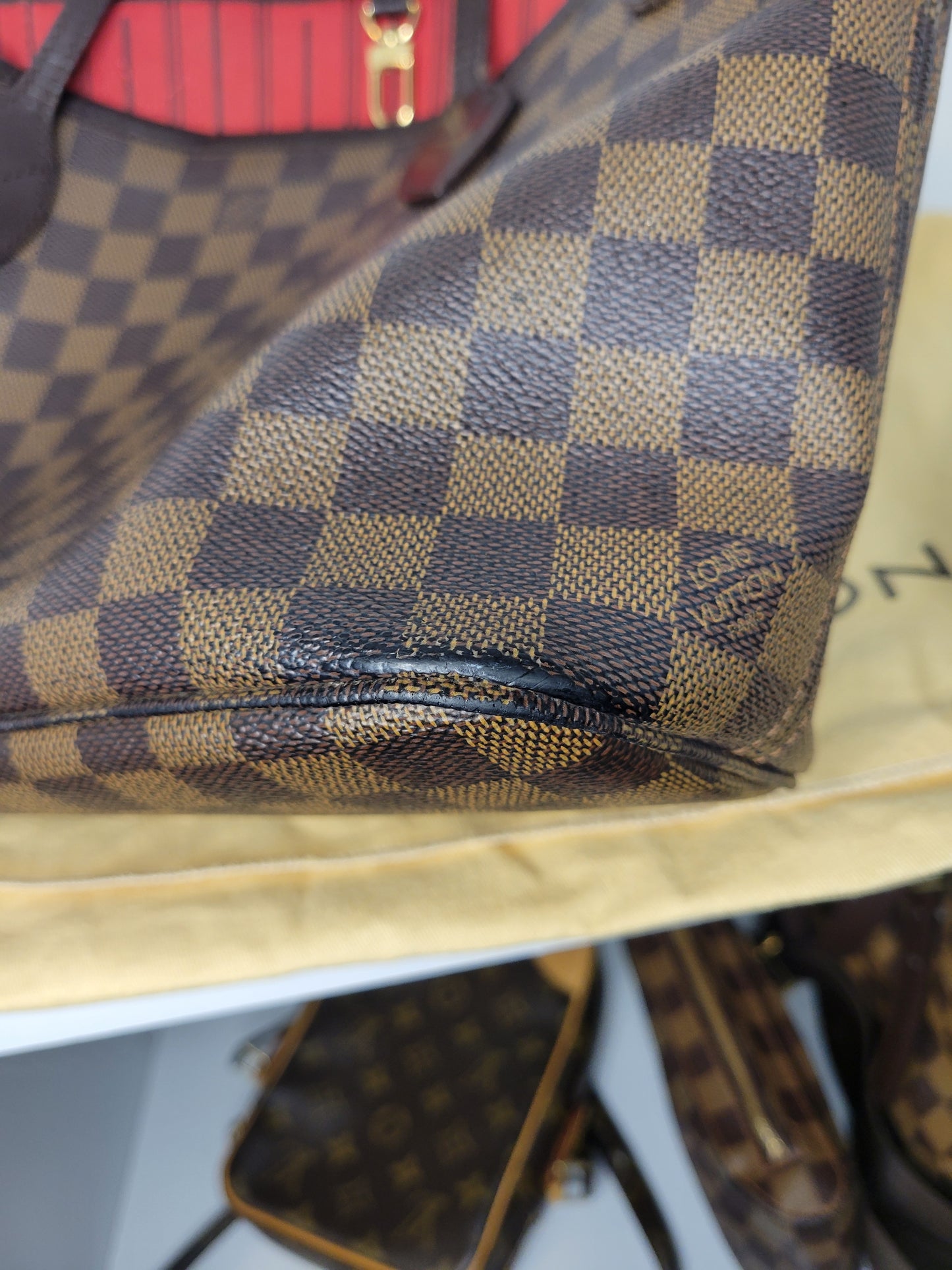 *Signs of wear on outside of bag including multiple scuffs and rubbing / loss of color on corners