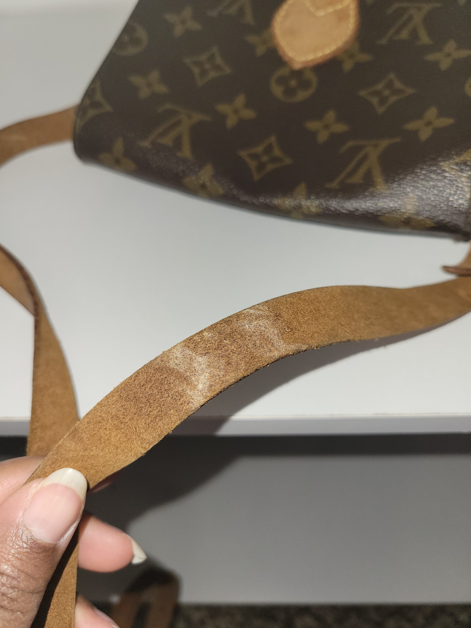 *Leather trimmings shows aging, scratches, scuffs, and white mark on underside