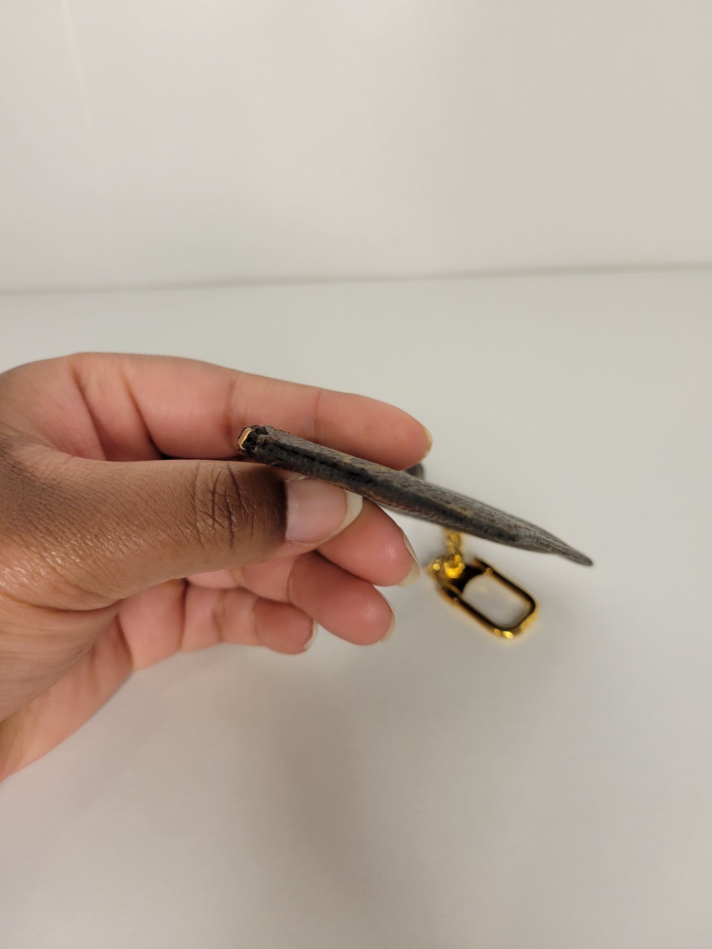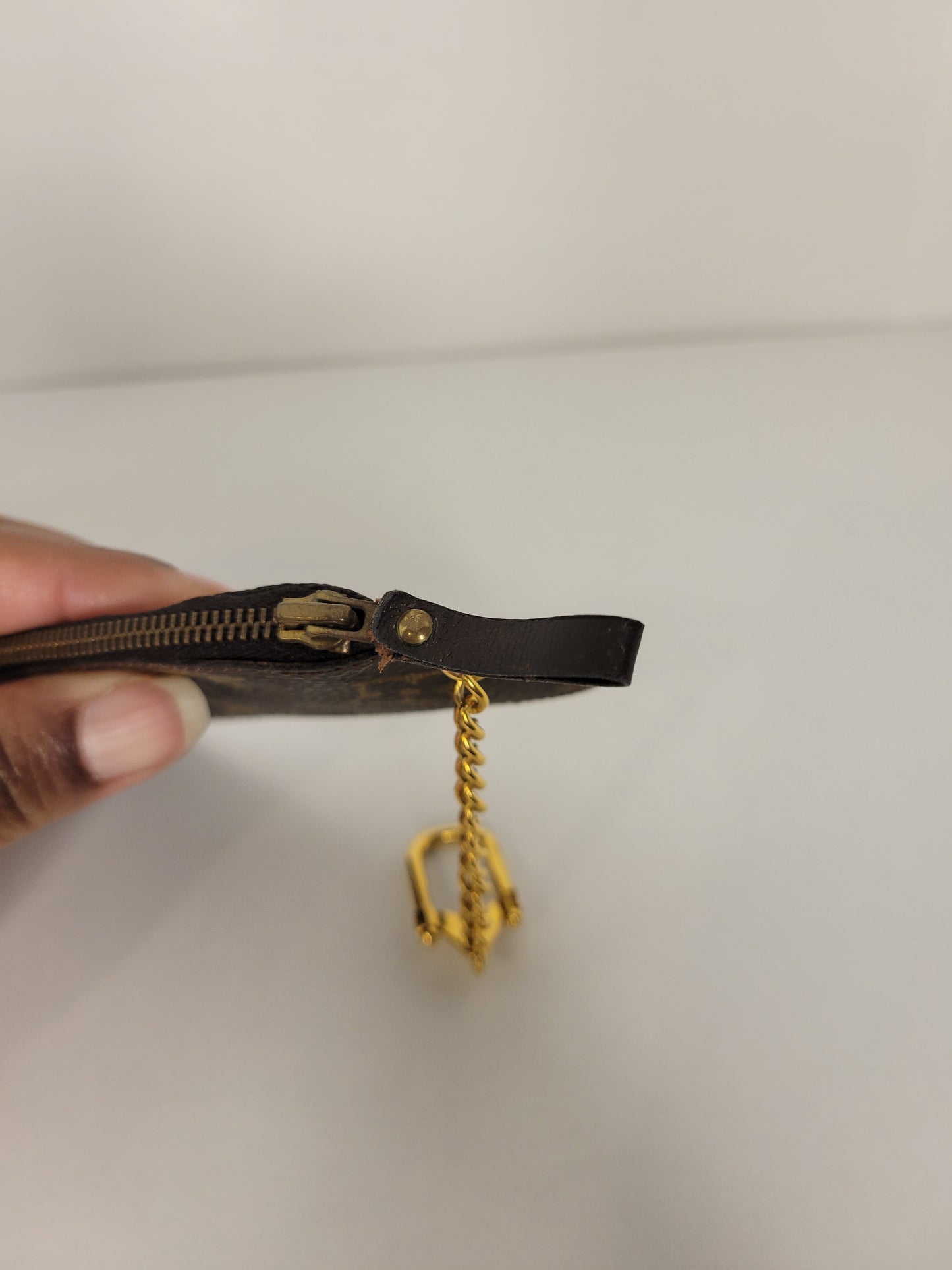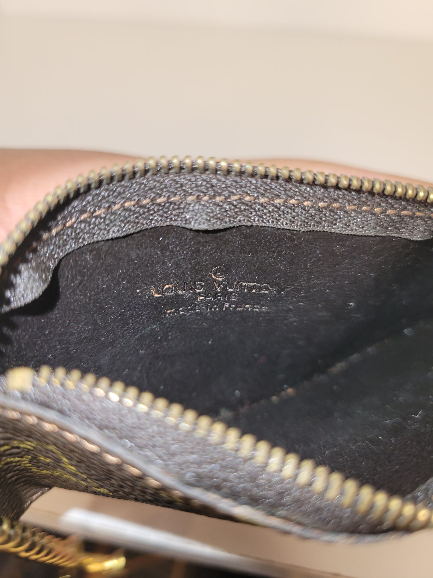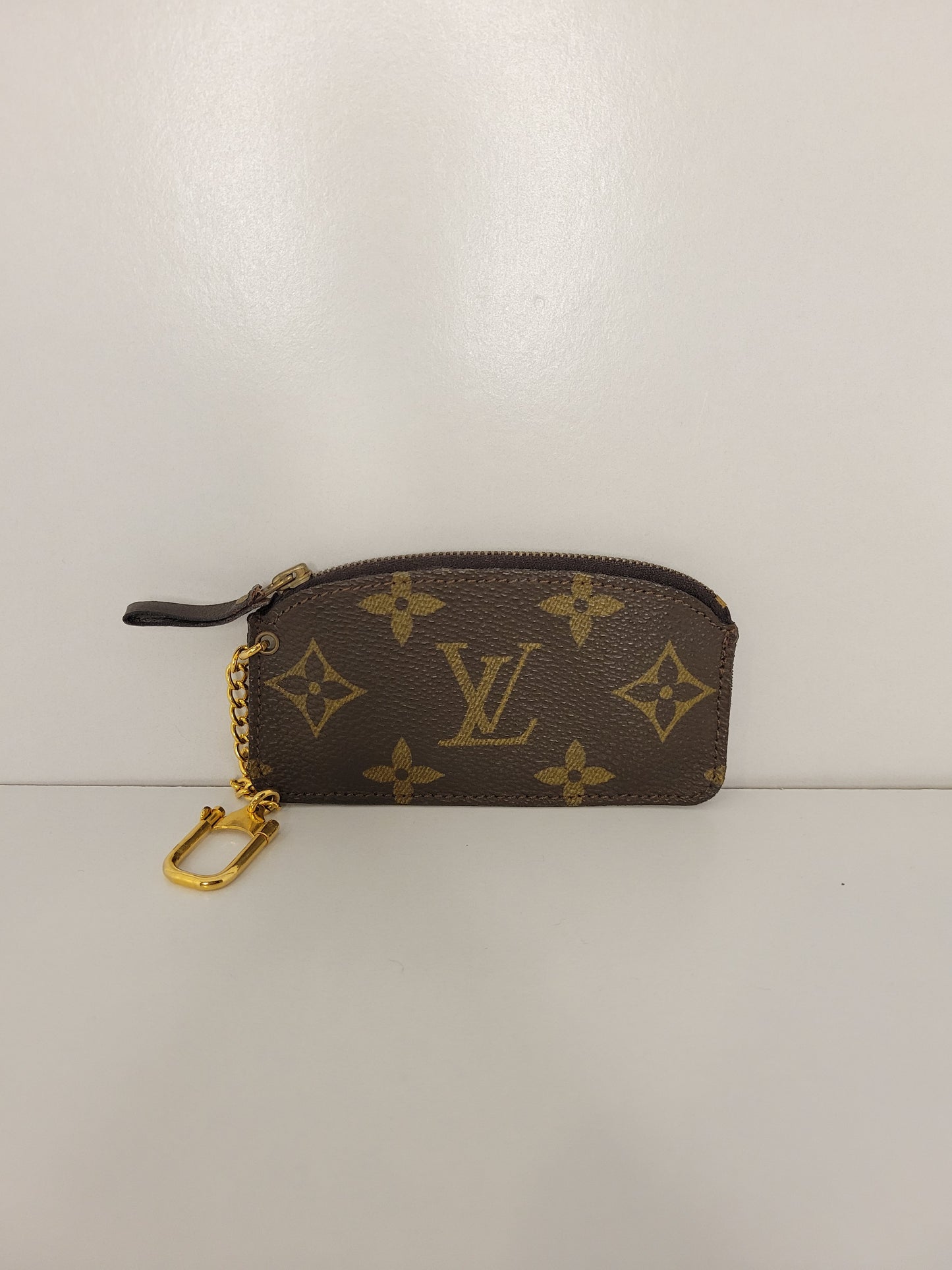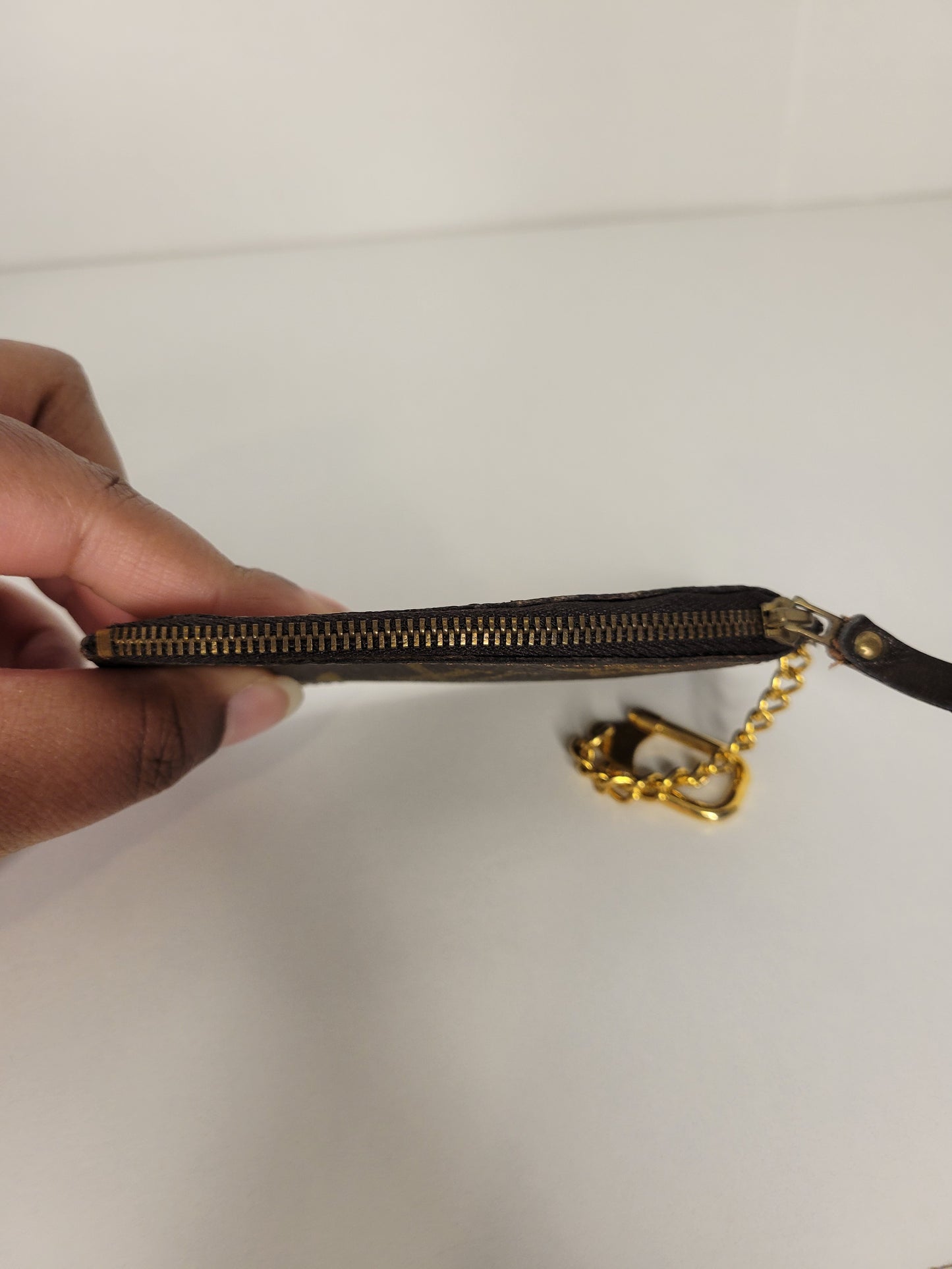 This key pouch is a must have in your LV collection! This model is smaller than the modern key pouch. It can hold coins, chapstick and similar small items. It CANNOT fit cards inside. The chain can be used for keys, to attach in another LV bag, or even on a belt.