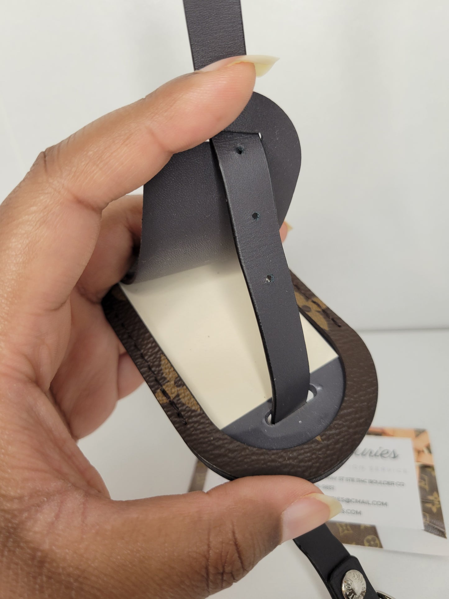 This adorable luggage tag can be attached to any of your favorite LV bags for a unique look. It is crafted out of Monogram canvas and leather. It opens to a clear plastic window to show your information.