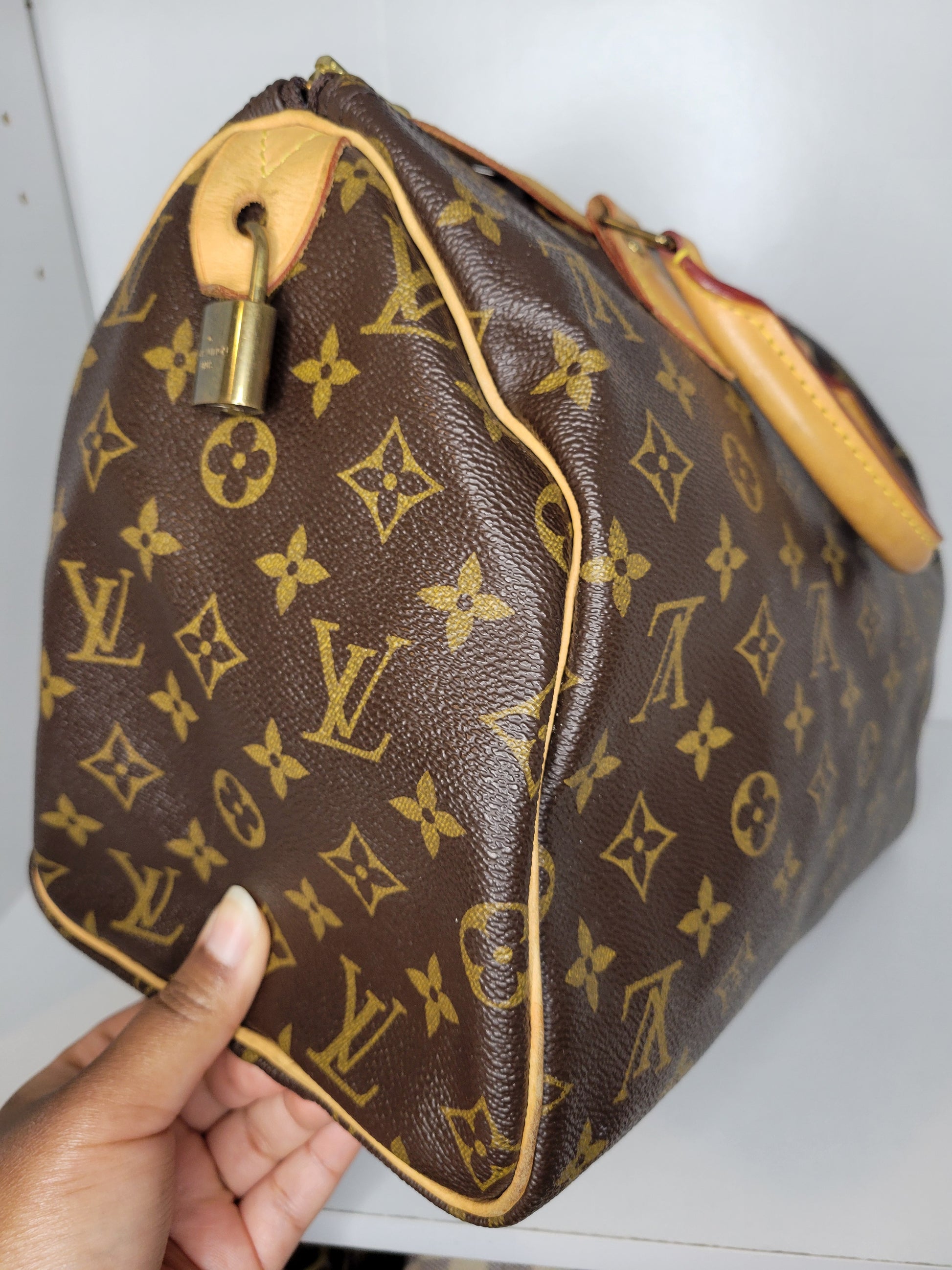The Speedy 30 is one of the most popular bags with new and seasoned collectors! It features a large zippered opening and a small interior pocket.
