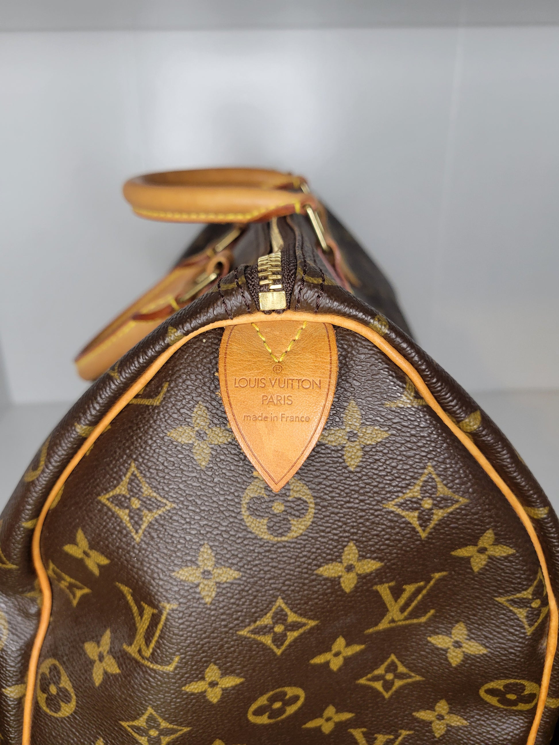 The Speedy 35 is perfect for travel and work because it's flexible, lightweight and spacious! It features a small interior pocket and a large zippered opening.