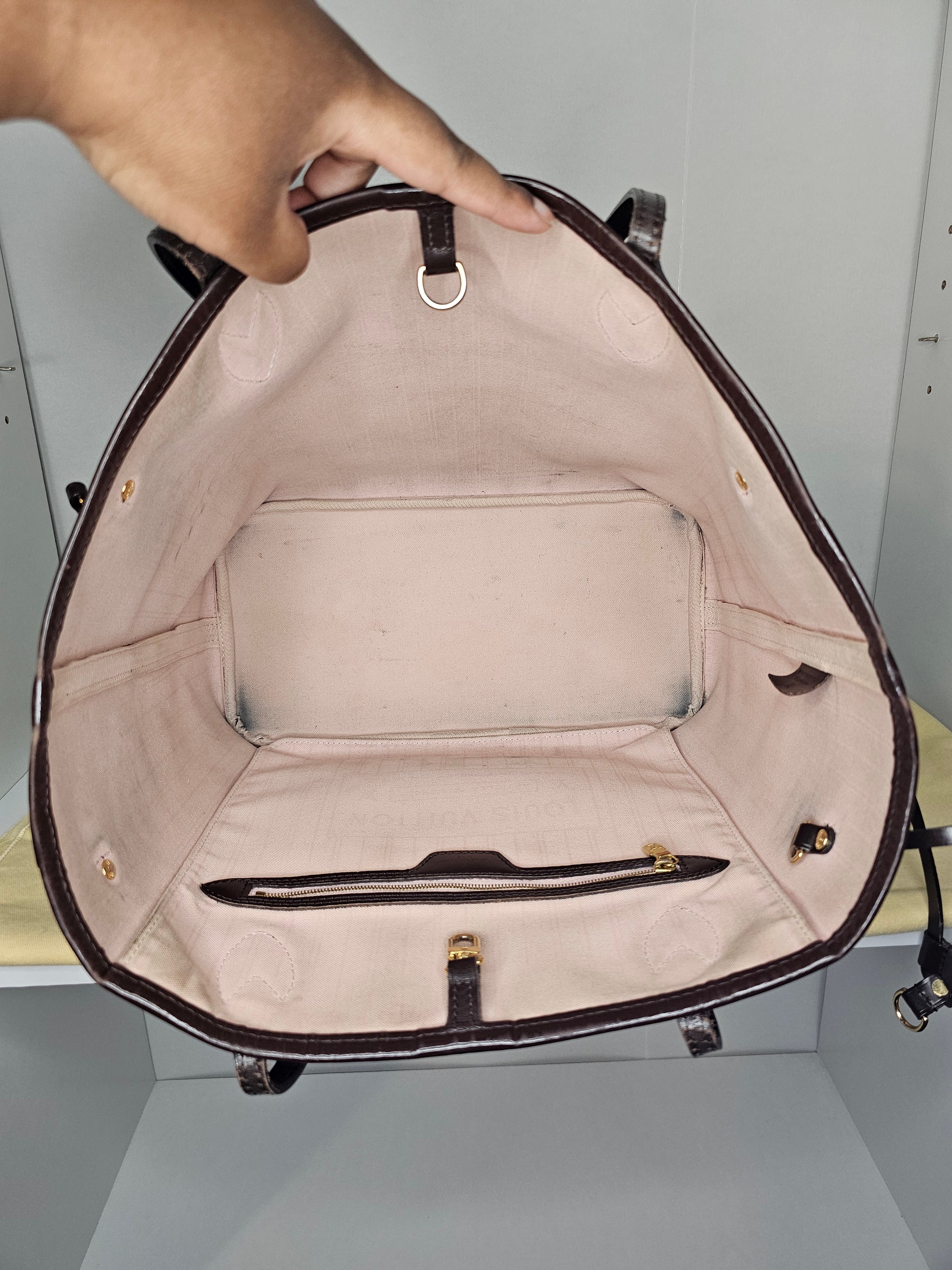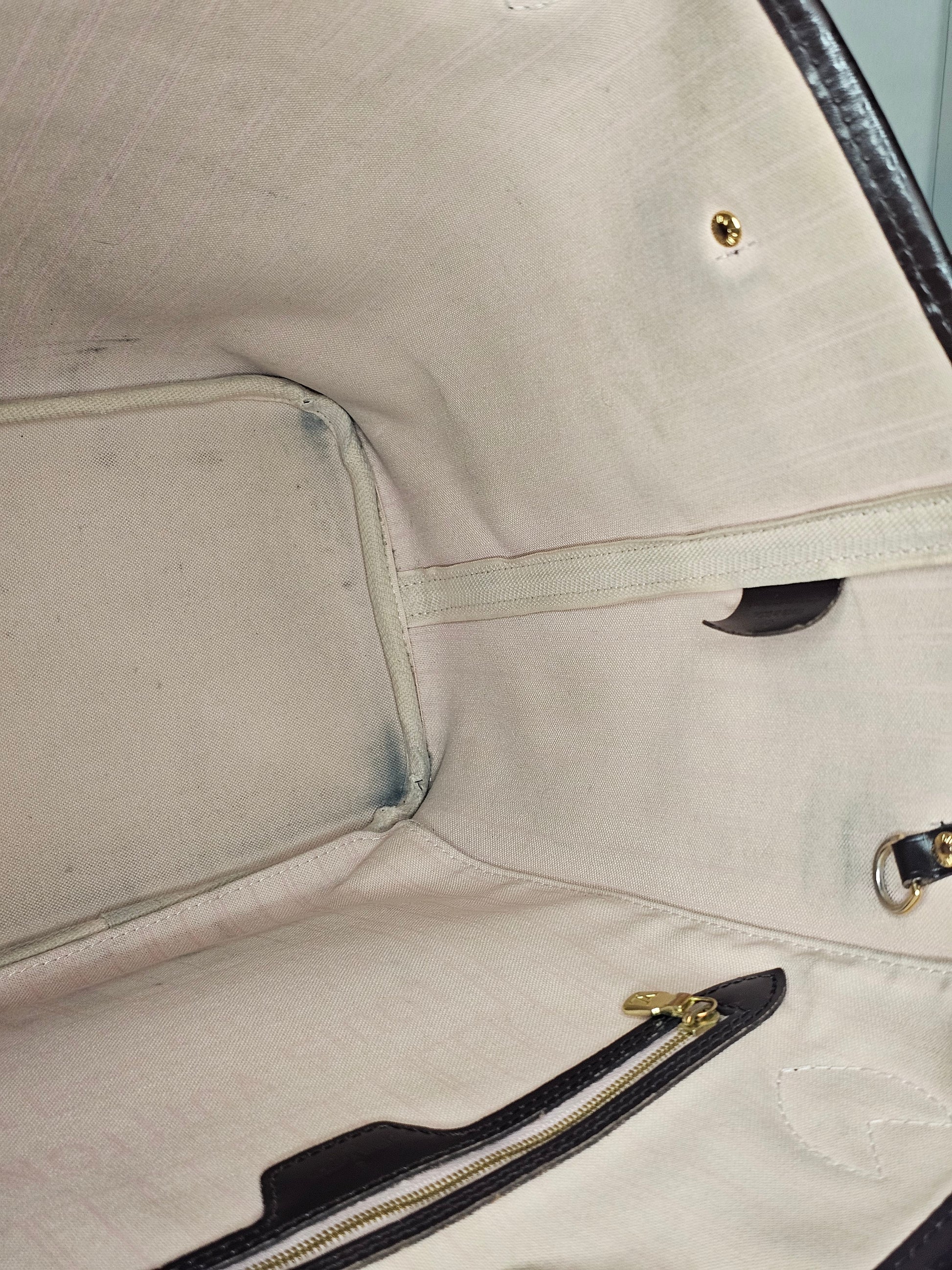 The Neverfull MM is the perfect size tote bag for daily errands, short trips and work! It has a large open pocket zipper pocket, clip closure, and interior zipper pocket.