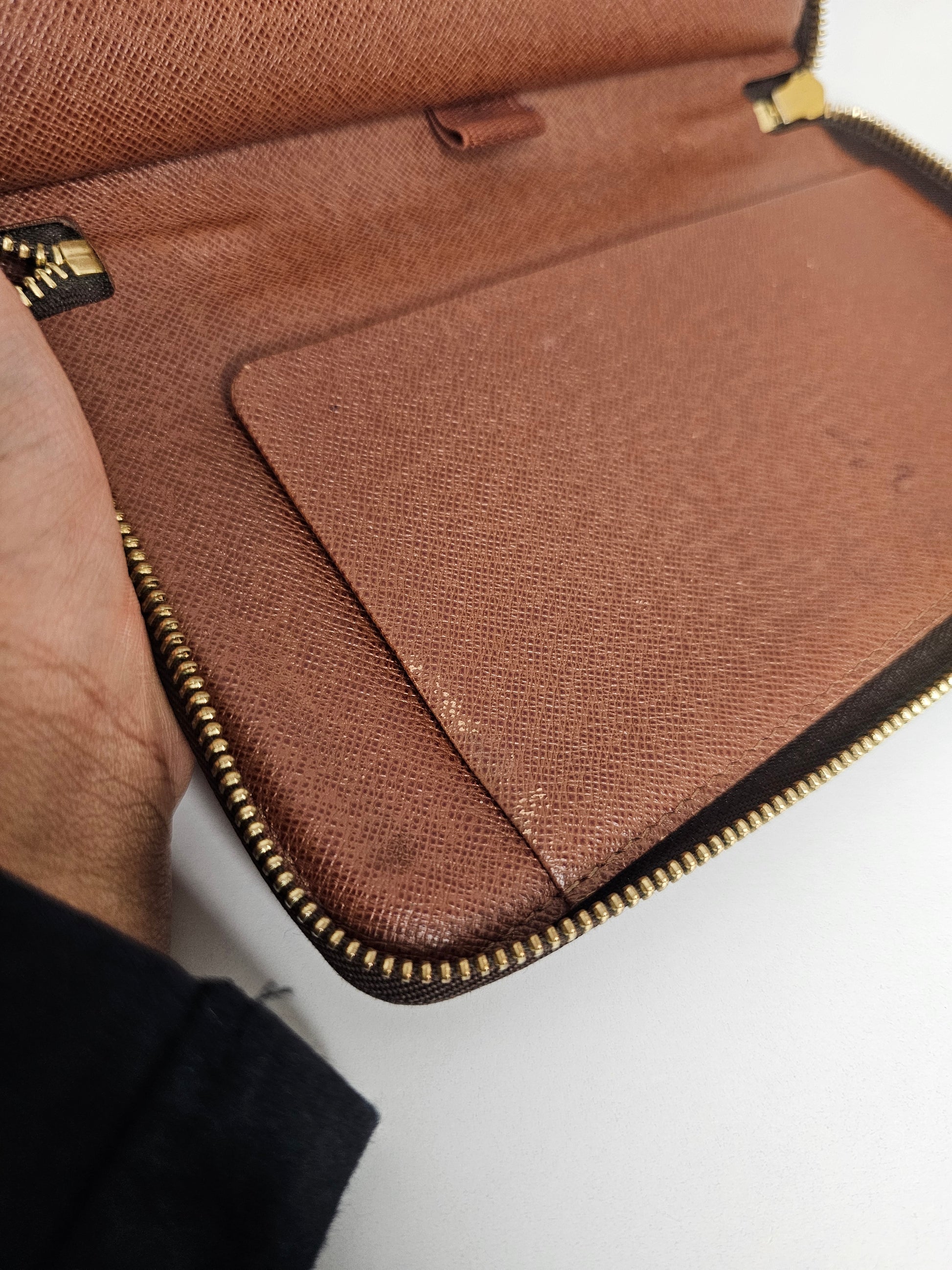 *Outside of wallet has wear to Monogram pattern, little cracks and a missing stitch or two in the creases